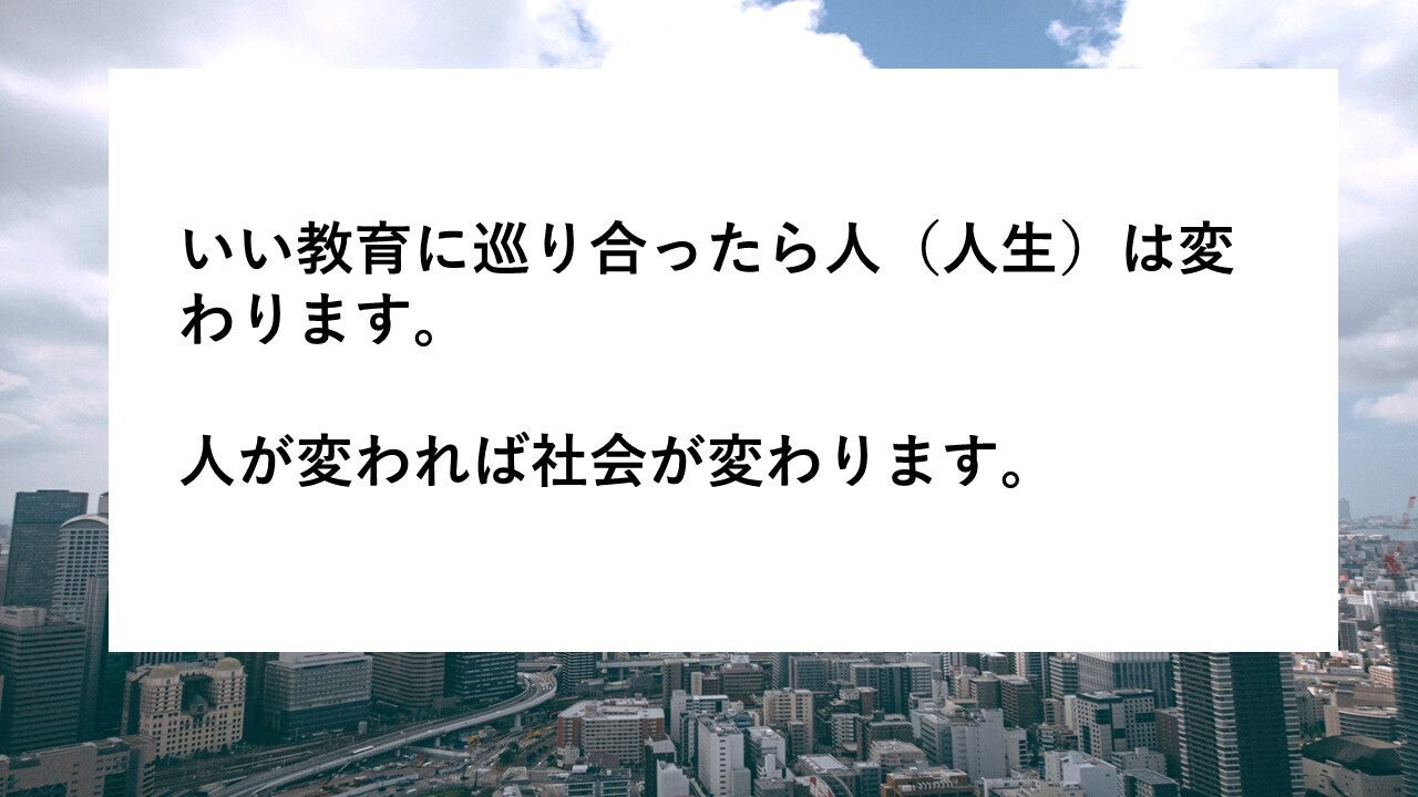私は、教員とは子どもの将来を決めてしまう責任の大きい仕事であり、「日本の未来を創る子供」を育てる仕事、いわば日本社会の未来を創る素晴らしい仕事だと考えています。