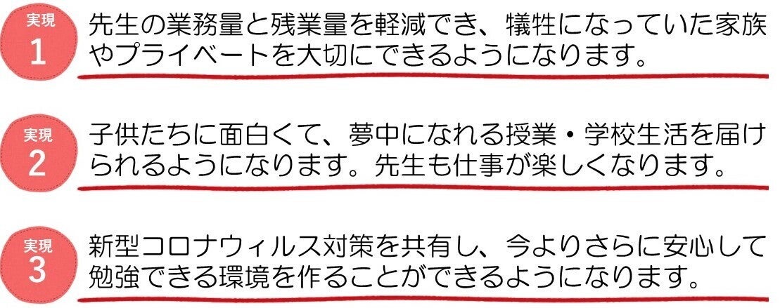 そして新型コロナウィルスの情報と対策内容を全国の学校が共有できます。よりレベルの高い対策ができ、今まで以上に安心して学習できる環境を作ることができます。