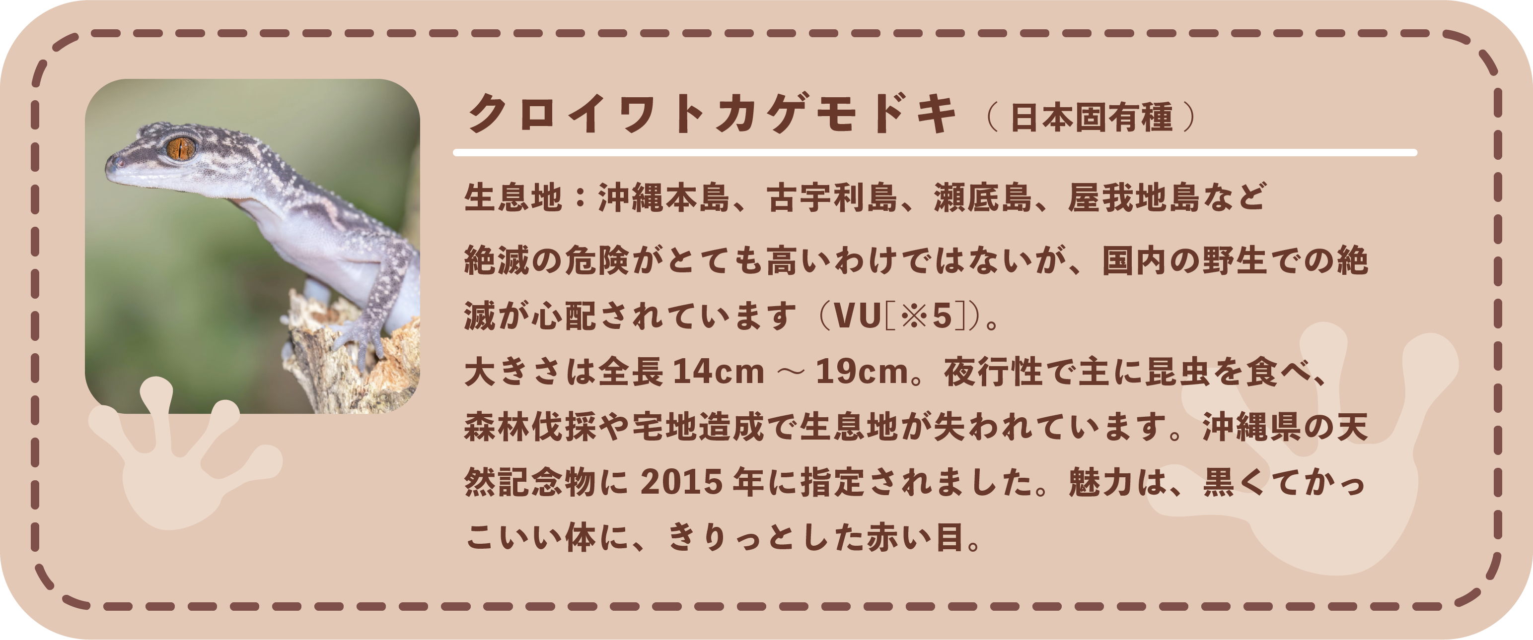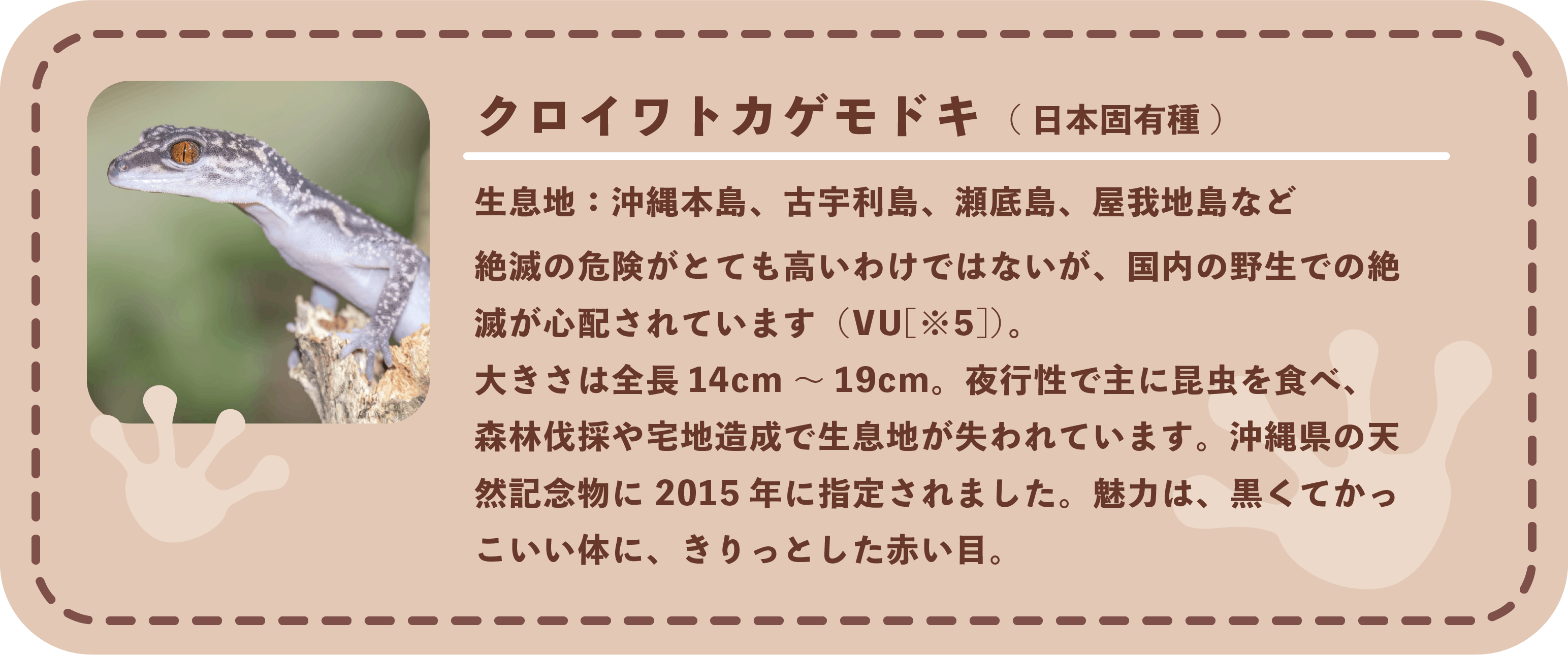 ここまで紹介してきたような、魅力的な爬虫類や両生類は今、生きる場所がどんどん奪われています。絶滅危惧種に指定されている生き物もたくさんいます。