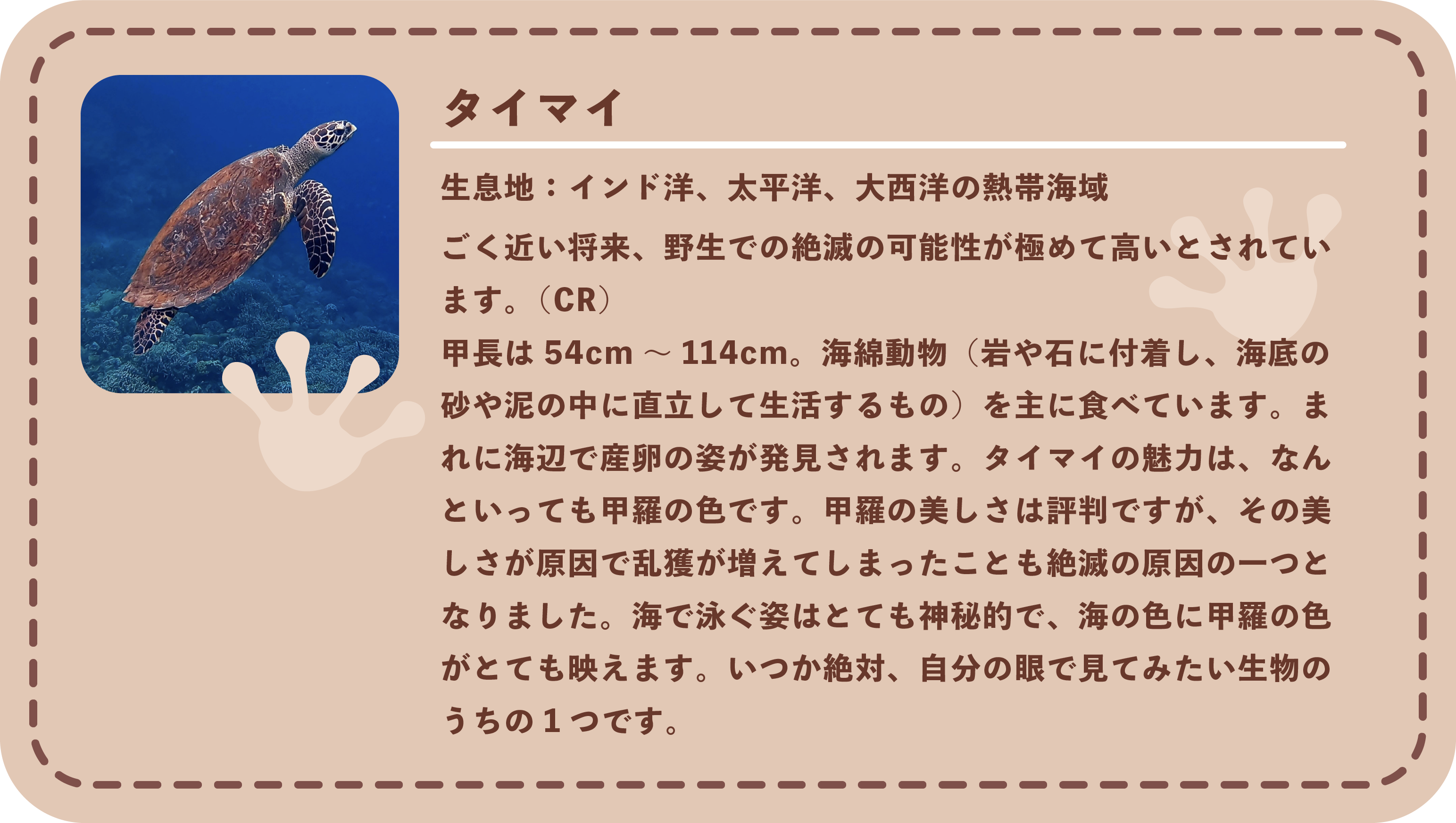 他にも魅力を伝えたい生き物たちがいっぱいいます。