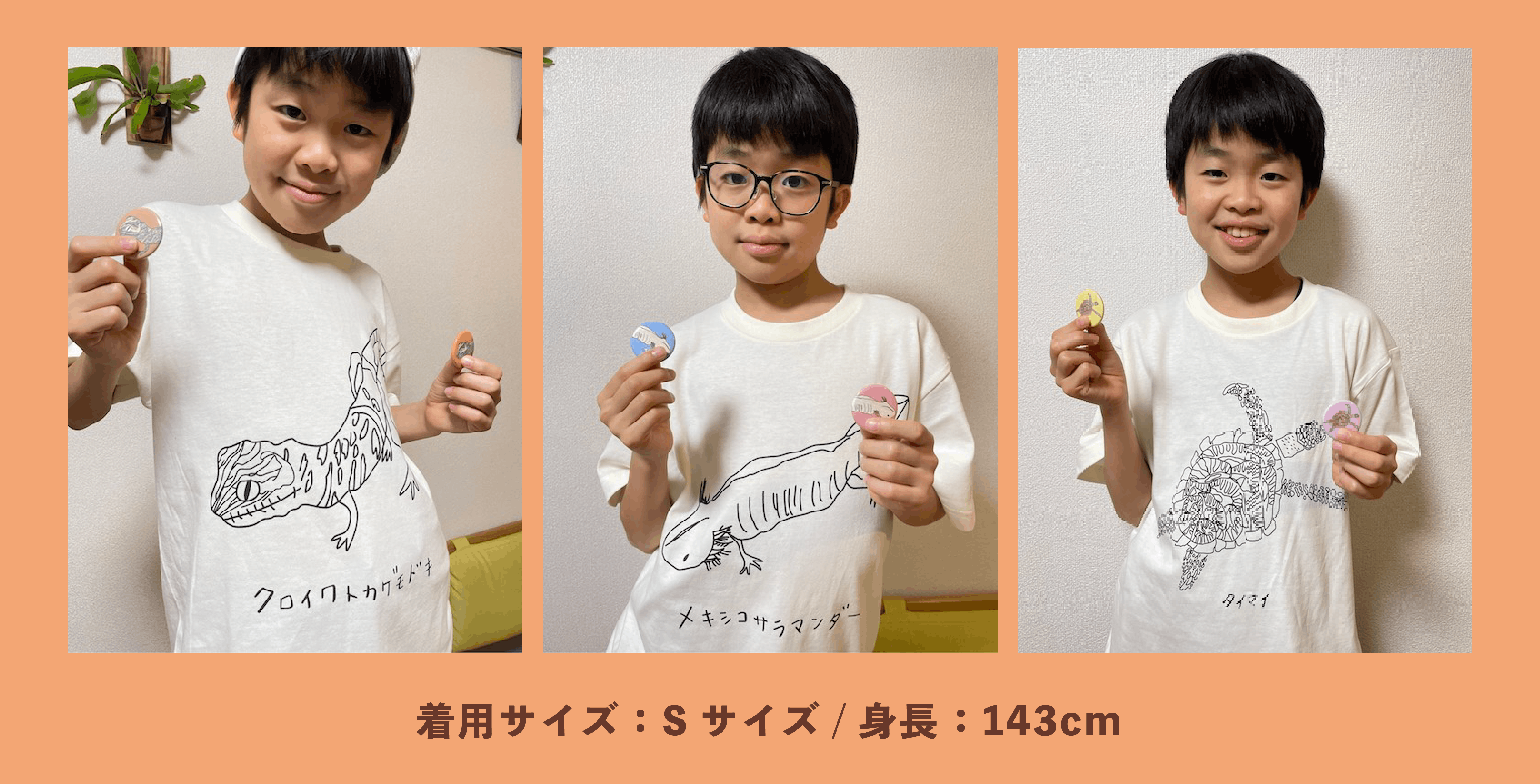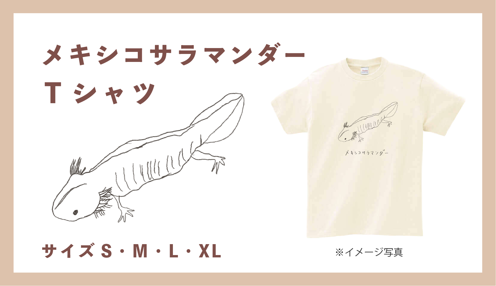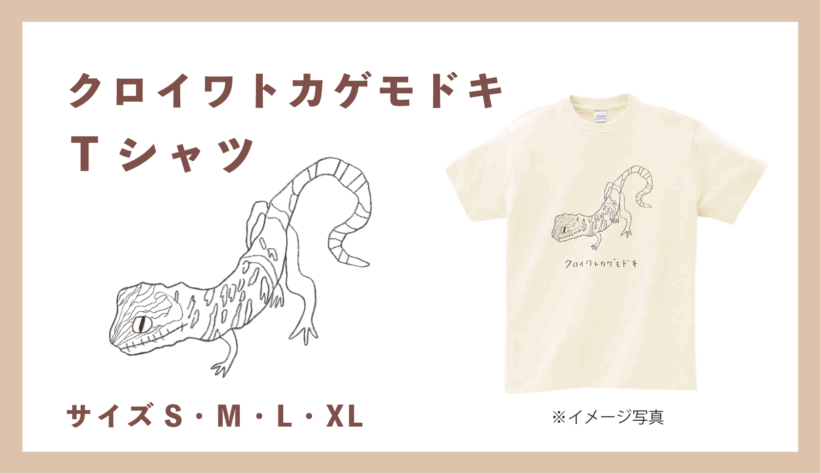 島﨑圭斗が描いた、クロイワトカゲモドキ、メキシコサラマンダー、タイマイが印刷されたTシャツをお送りします。欲しいTシャツの種類を選んで購入してください。サイズはS・M・L・XLを用意してます!※全種類パックは3種類全てお送りします。(2021年6月送付予定)