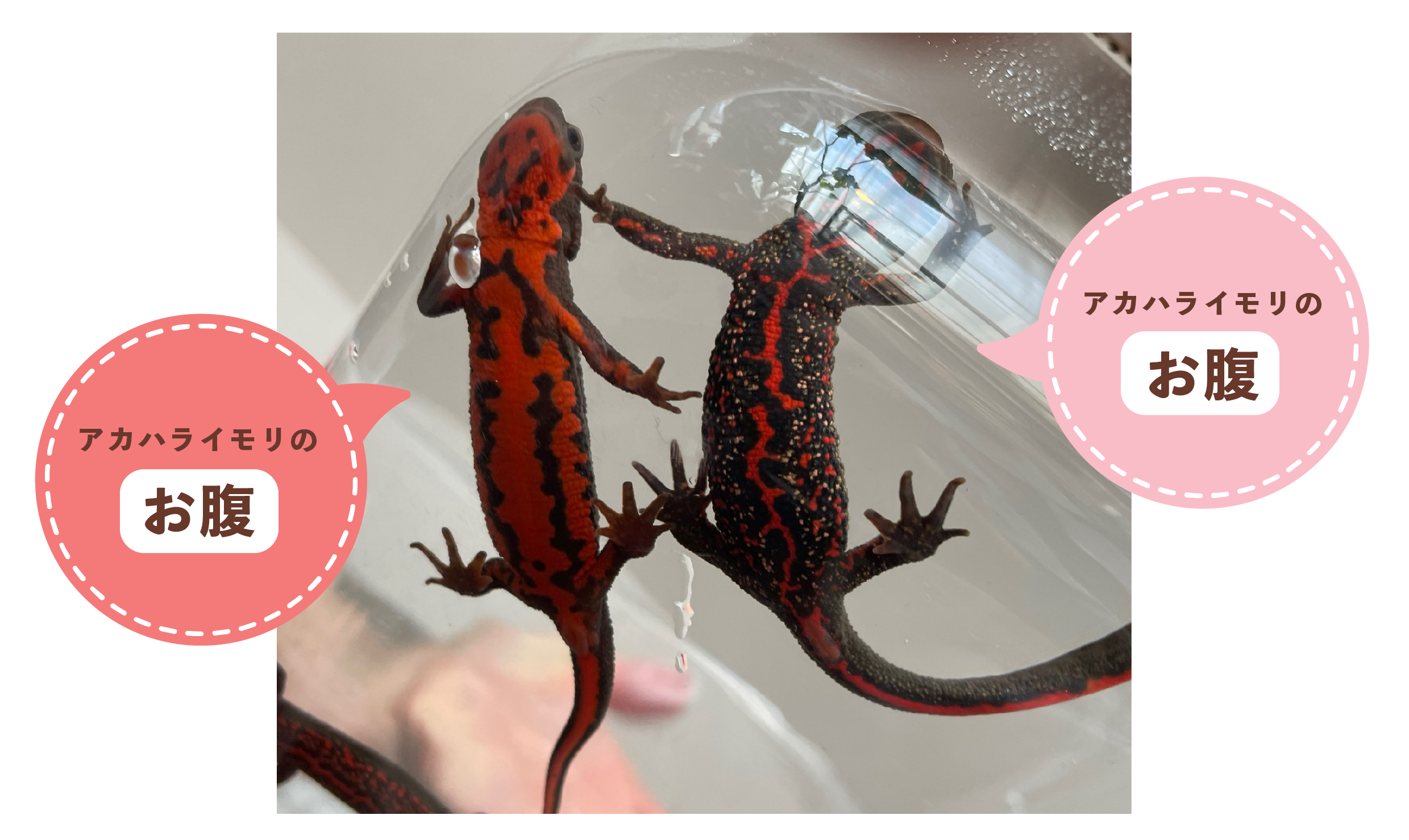 見た目通り、お腹が赤い事から「アカハラ」という名前が付いています。お腹が赤いのは、敵に毒をもっている事をアピールするためです。フグと同じテトロドトキシンという毒をもっています。