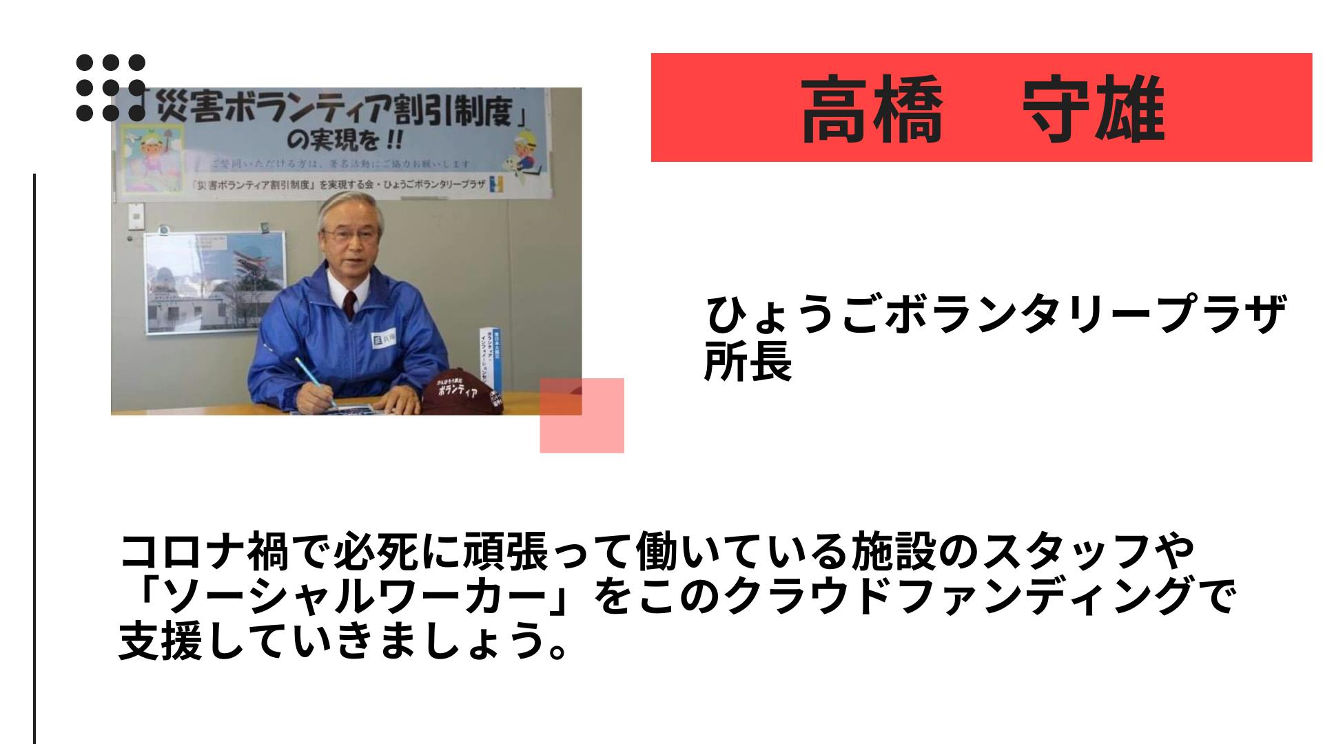 2021/02/27 12:28クラウドファンディング最終日となりましたが、現在多くの支援者の方から応援頂いております。応援頂いた一つ一つの支援の奥にある温かいお気持ちに感動しております。コロナ禍に障がい者施設で起きている現状を少しでも知って頂きたいとの気持ちからスタートしたクラウドファンディングでしたが、障がい者施設で働いている方々の大変な現状を知ることで障がい者施設における防災・減災の課題を見える化するきっかけになりました。様々なリスクから施設の利用者を守るためにはリスクについて知っておく必要があります。新型コロナウィルスの被害によって「リスクは災害だけではなく、様々な形で現れる」という事を学ぶことができました。社会が事業を継続していく為にリスクを把握し、対策を計画しておく必要性が今まで以上に求められるようになり、社会の構造が変わってきていることを感じます。いつの時代でも人と人とのネットワークによる繋がりは大きな力を持っています。今回のクラウドファンディングで繋がったネットワークは、今後の福祉業界でもプラスになるつながりだと確信しています。残り僅かな時間ですが、少しでも障がい者施設への支援がつながるように皆様のご支援宜しくお願い致します。 もっと見る