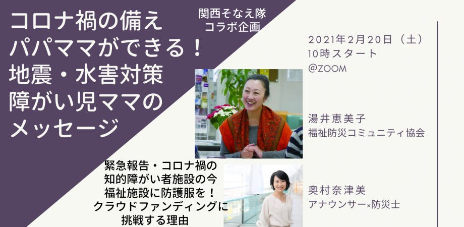 「コロナ禍の備え〜パパママができる!!地震・水害対策 障がい児ママからのメッセージ」