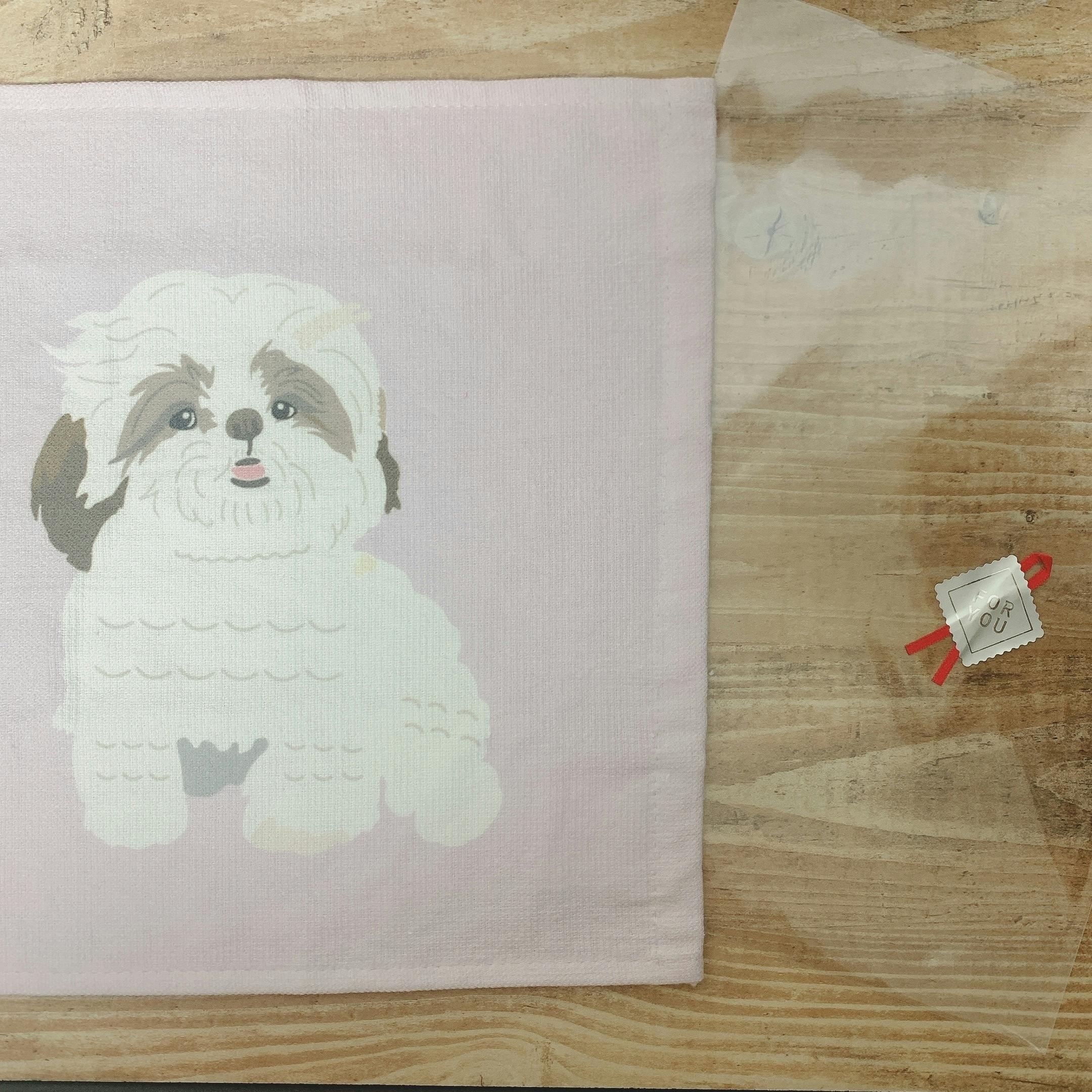 「会社の重要な会議の前にふとハンカチに目をやると、ペットが笑顔でこちらを見ている」
