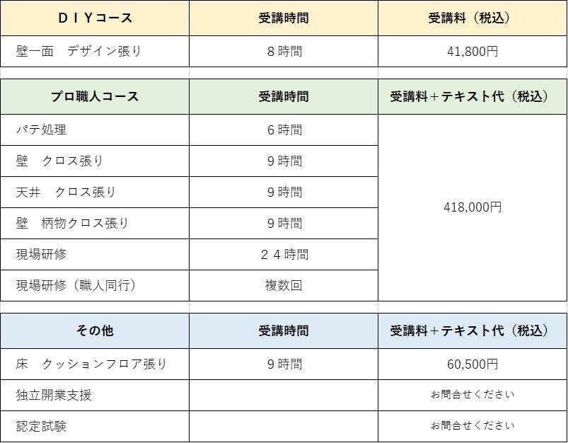 一般社団法人DIY技能育成協会が主催する、内装の知識・技術をカリキュラムに沿って一から学べる場です。目指すレベルに応じて、DIYコース・職人コースの2つのコースを設けております。これとは別に、体験会も開催しています!