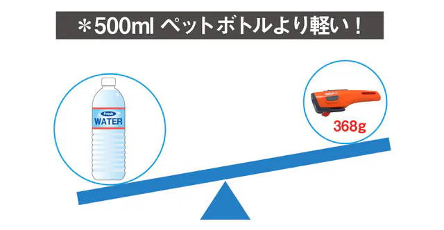 Kelvin8は、500mlのペットボトルよりも軽くて、長さも約25センチと、女性やお子さんでも十分取り扱えるサイズです。