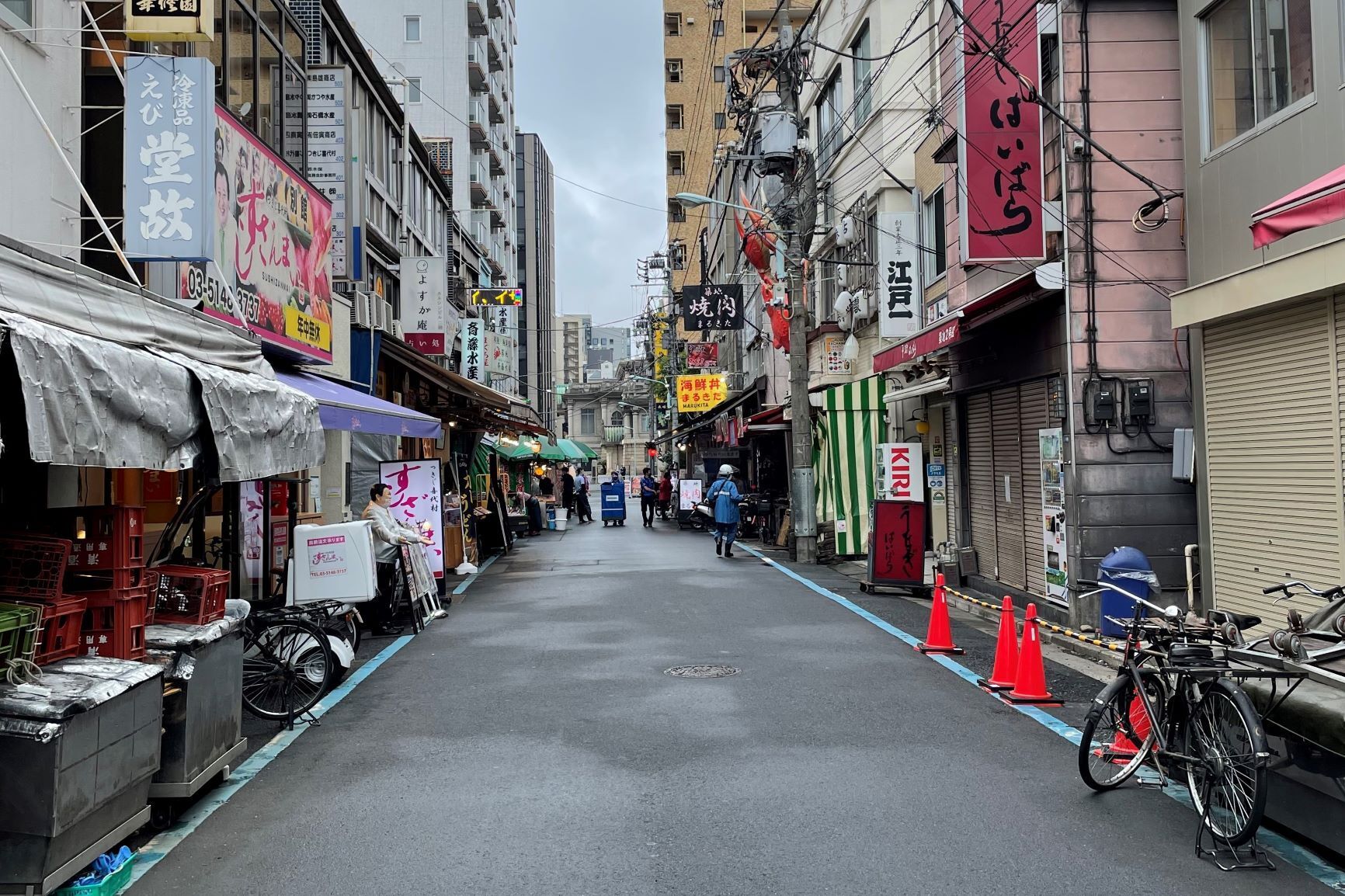 今の築地は休業しているお店もありますが人が昼間でも少ない写真のような状態です。