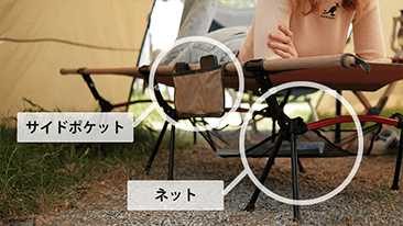 屋外、室内の簡易ベッドとしてはもちろん、椅子として、荷物置きとして、車内でも、もっと便利に使えます。