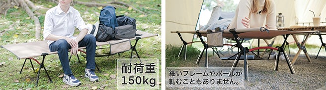 屋外、室内の簡易ベッドとしてはもちろん、椅子として、荷物置きとして、車内でも、もっと便利に使えます。