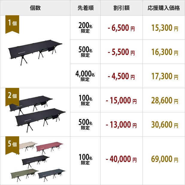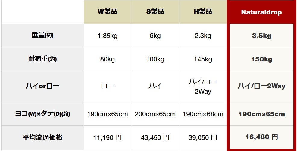 キャンプブームはこれからさらに広まり、市場に多く出回るようになるでしょう。中には安価で、購入しても使えないような品が現れる可能性もあります。ハイ/ローの2WAYで、様々な用途に合わせて利用でき、さらには安心して使えるNaturaldropのコットが遥かに経済的です。