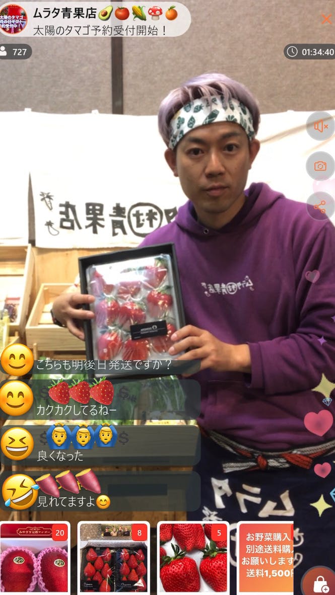 さらに、一旦はお客さんが来店しづらく、閉鎖した店舗ですがスマホを使ったライブ配信で野菜を販売するライブコマースを取り入れました!お客さんもスマホ画面から生中継を見ながらコメントしたりしながらその場でお買い物してもらい、宮崎市内のお客さんには直接配達、全国に向けては発送する梱包、発送、配信の拠点として活用していけると思います!この方法を成功事例としてコロナで苦戦している飲食店なんかにも取り入れてもらえたらと思っています。