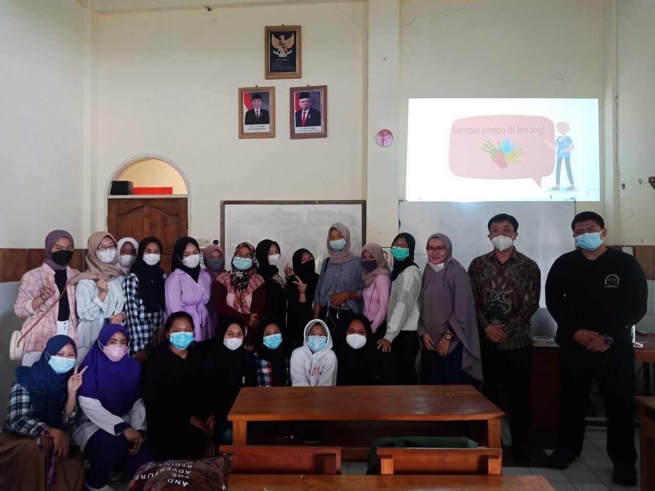 3月末でクラウドファンディングを終了し、3,4名ほどの生徒に日本語の無料授業が出来ることになりました。そのため早速、4月1日にジャカルタ郊外のデポックという町の看護高校に生徒募集の為、セミナーに行きました。こちらの高校は、海外での就職も視野に入れており1学年60名の生徒のうち半分の30名に日本語教育を行い、残りの30名にアラビア語を教えているとのこと。今回のセミナーでは、30名の日本語授業を受けている生徒を対象にセミナーを行いました。日本語を受けているといっても、レベルは低くひらがなカタカナがやっと出来るレベル。日本語能力試験の存在も知らないなど、改善の余地はありそうです。冒頭、日本語で「おはようございます!」と挨拶をすると、元気な声で「おはようございます!」の返事。クラスの雰囲気は、とても良い印象でした。RBJ代表の石橋アイニによる、日本で介護の仕事をしていた経験談や、日本の生活や仕事内容をまとめたビデオを見せ説明しました。最後には、セミナー参加者全員と記念写真。因みに、この学校は代表者の方の生徒に対する姿勢が素晴らしいものでした。今回、我々も初めての訪問でしたが、「生徒のチャンスになるならば」ととても協力的に受け入れて頂きました。また、他の学校では、セミナーをするのに、先生にお金を請求されることもありますが、この学校ではそのような要求は一切ありませんでした。今後、他の学校でも募集し、応募のあった生徒の中から選考して参ります。