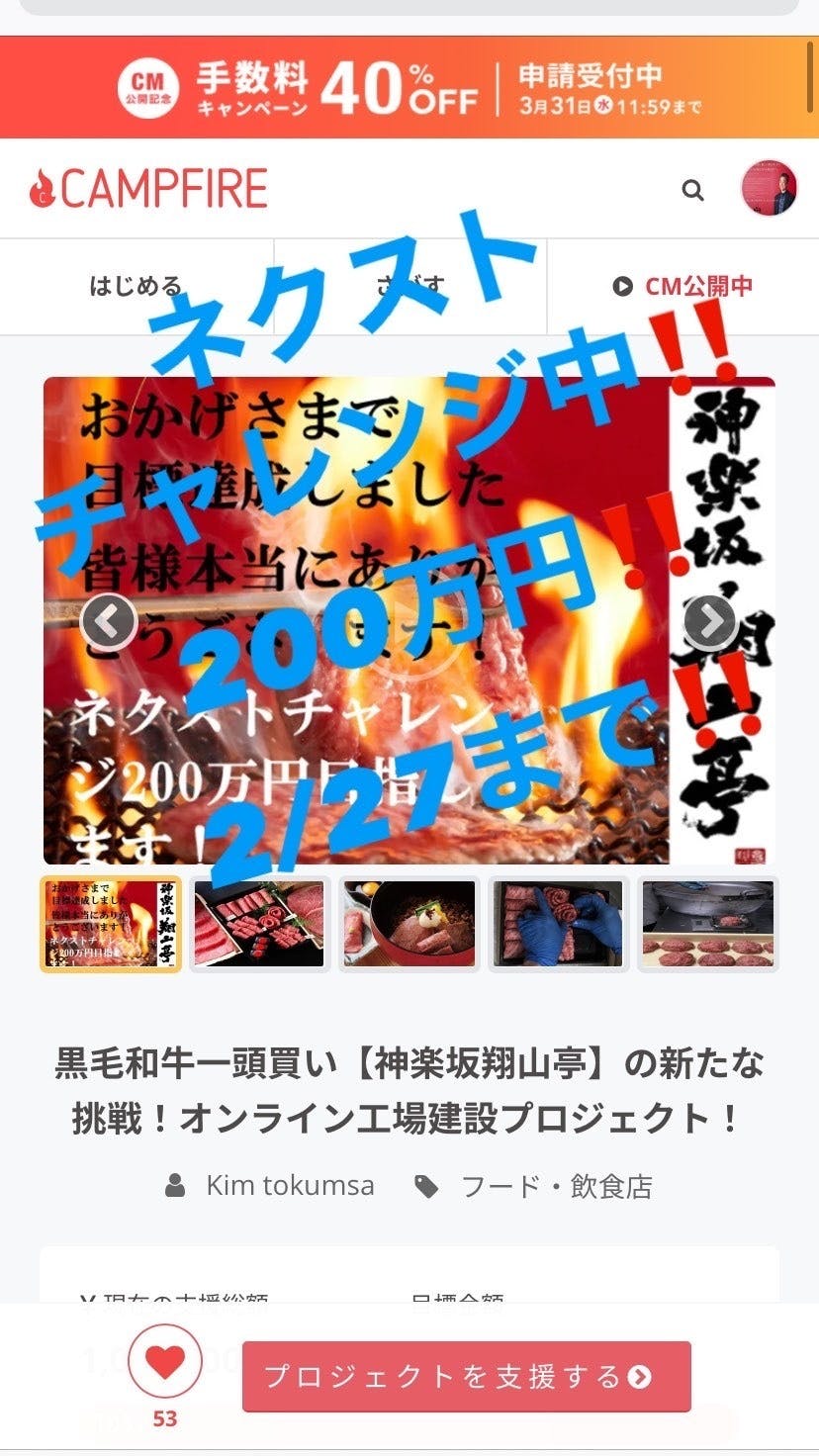現在、ネクストチャレンジ200万円をゴールに残りの期間、引き続き応援の程宜しくお願い申し上げます!