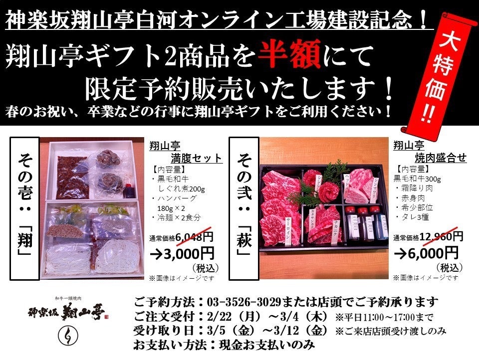 オンライン工場完成記念 清澄白河近隣限定半額商品3/4までの電話予約受付!