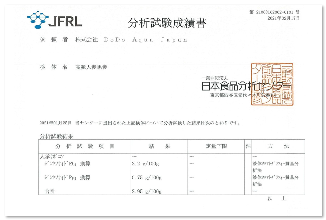 日本食品分析センターの分析により、品質は折り紙付きです。