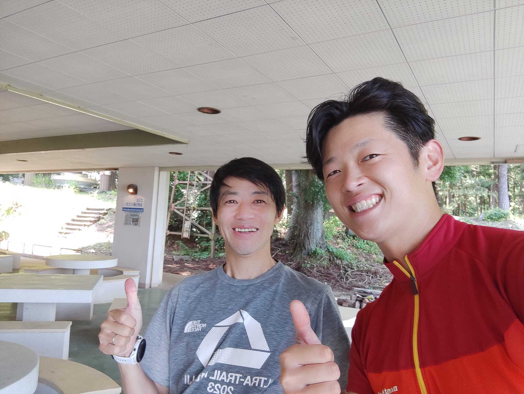 参加者のみなさんは9時前から10時頃までトレイルを登り&休憩所を通過、その時はもちろん応援のホラ吹きます!!