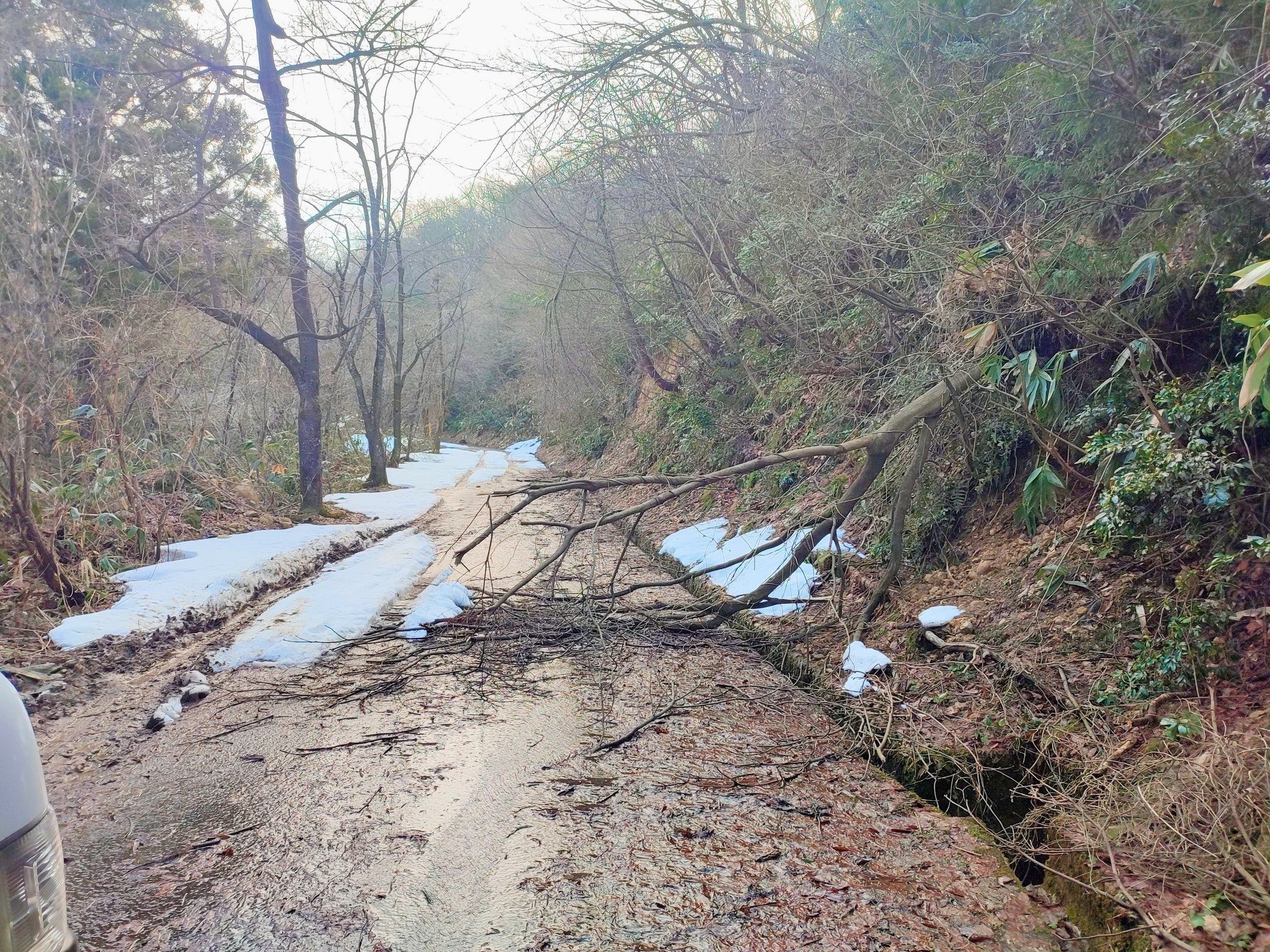 山頂部にはまだ雪があり、林道の方が山頂付近からまだ雪が厚くて車では山頂まで登れません!