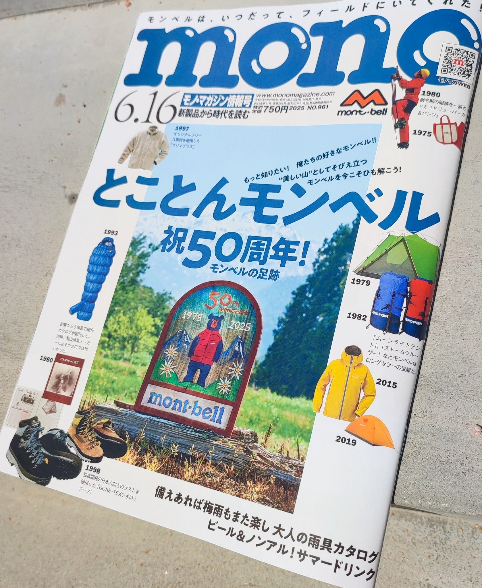 6月2日発売の『モノマガジン』に、なんと…モンベルさんの50周年特集の中で、僕の「里山ホラ吹きツアー」がちょこっと掲載されています!