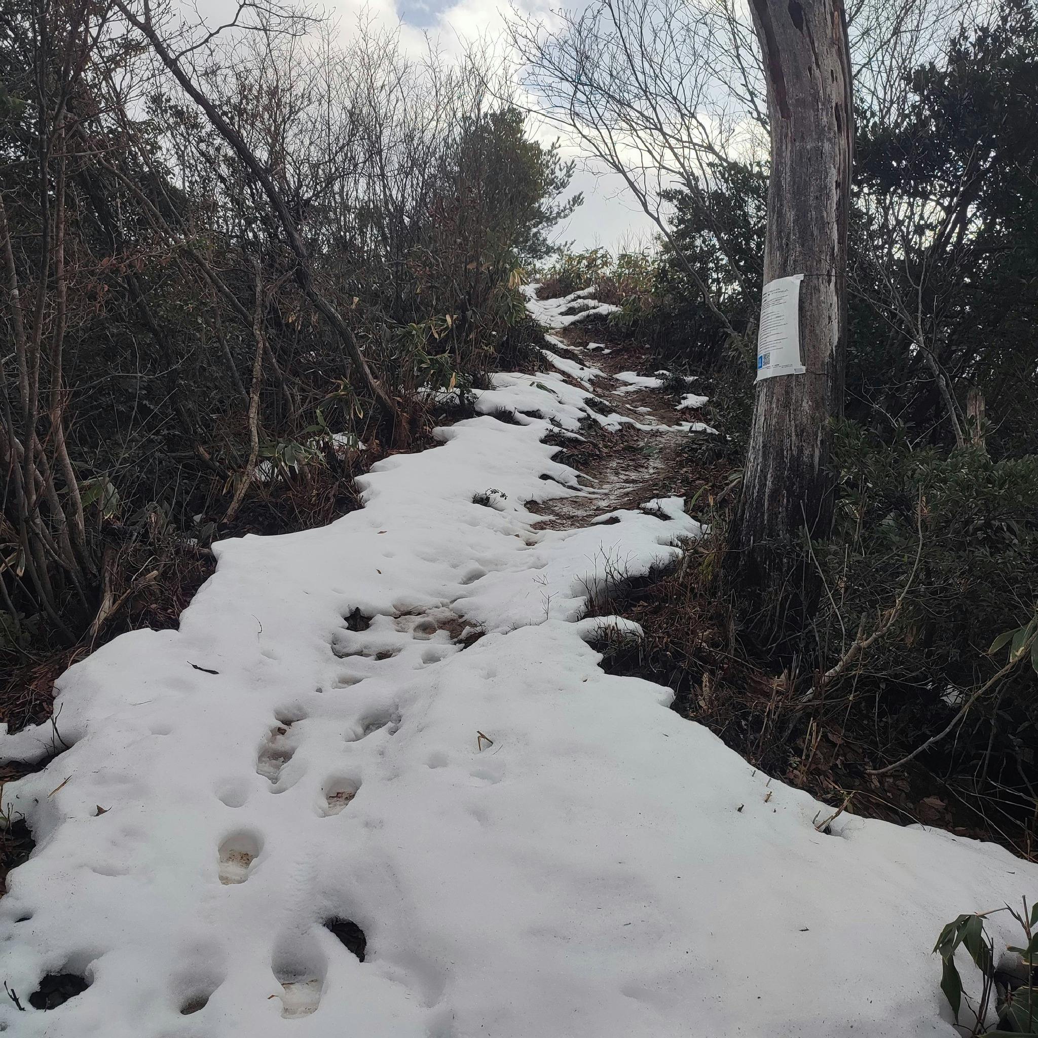 トレイルにはまだ雪が残り、折れた枝などもありましたが、ゆっくりと撤去しながら整備登山。