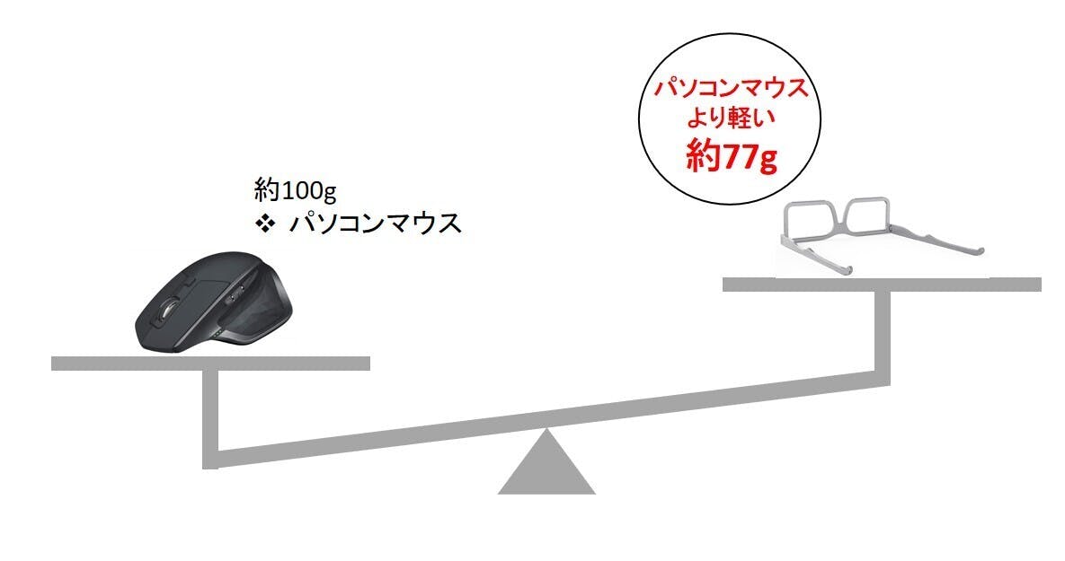 重さわずか77gの超軽量モデル。なんとパソコンマウスよりも軽いんです!