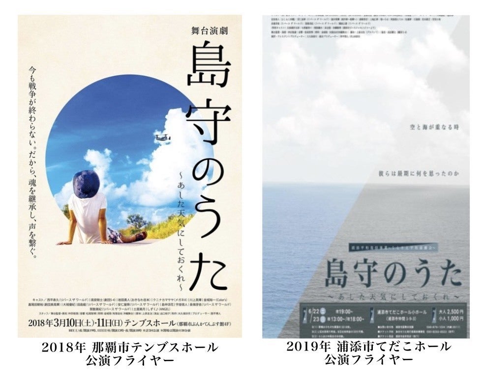 島守のうた実行委員会(実行委員長:南 信乃介)は、2018年那覇市てんぶすホール、2019年てだこホールにて舞台演劇「島守のうた」を上演し、戦時の沖縄県知事 島田叡氏、警察部長 荒井退造氏を主軸に、戦後生き延び沖縄を復興した方々を熱演しました。