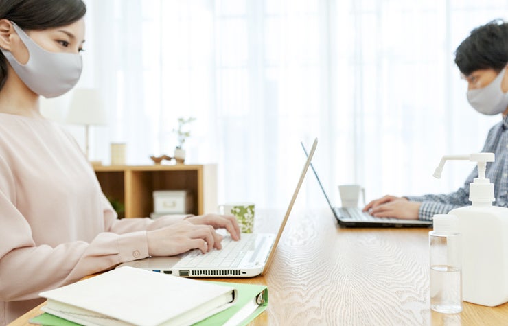 自粛ムード漂う中のテレワーク、オフィスワーク、
