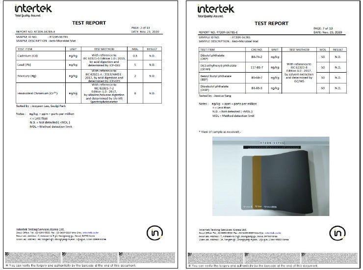 ・検査実施機関:Intertek Testing Services Korea Ltd. / http://www.intertek.co.kr/