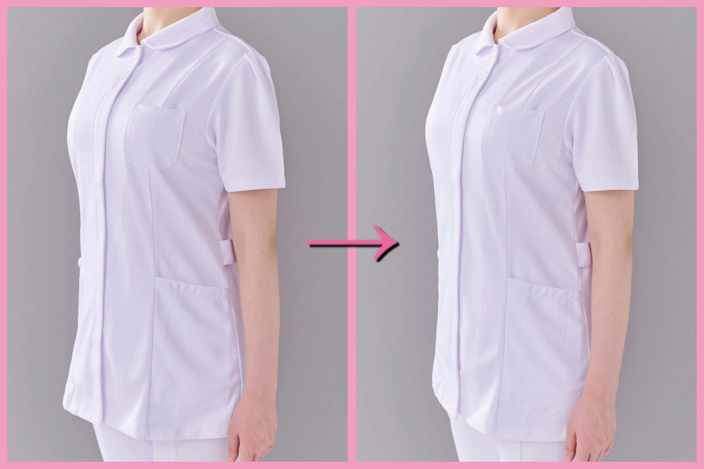 それは、現場の制服はタイトなデザインのものが多く、身体のラインが出てしまう、ということ。何より、利用者様や患者様を抱き起こすときなどに、ご自身のバストが当たってしまうことが悩み、とのことでした。(人と近い距離でお仕事をされる方、例えば美容師さんやエステシャンの方、マッサージのお仕事をされる方にも当てはまるかも知れません。)