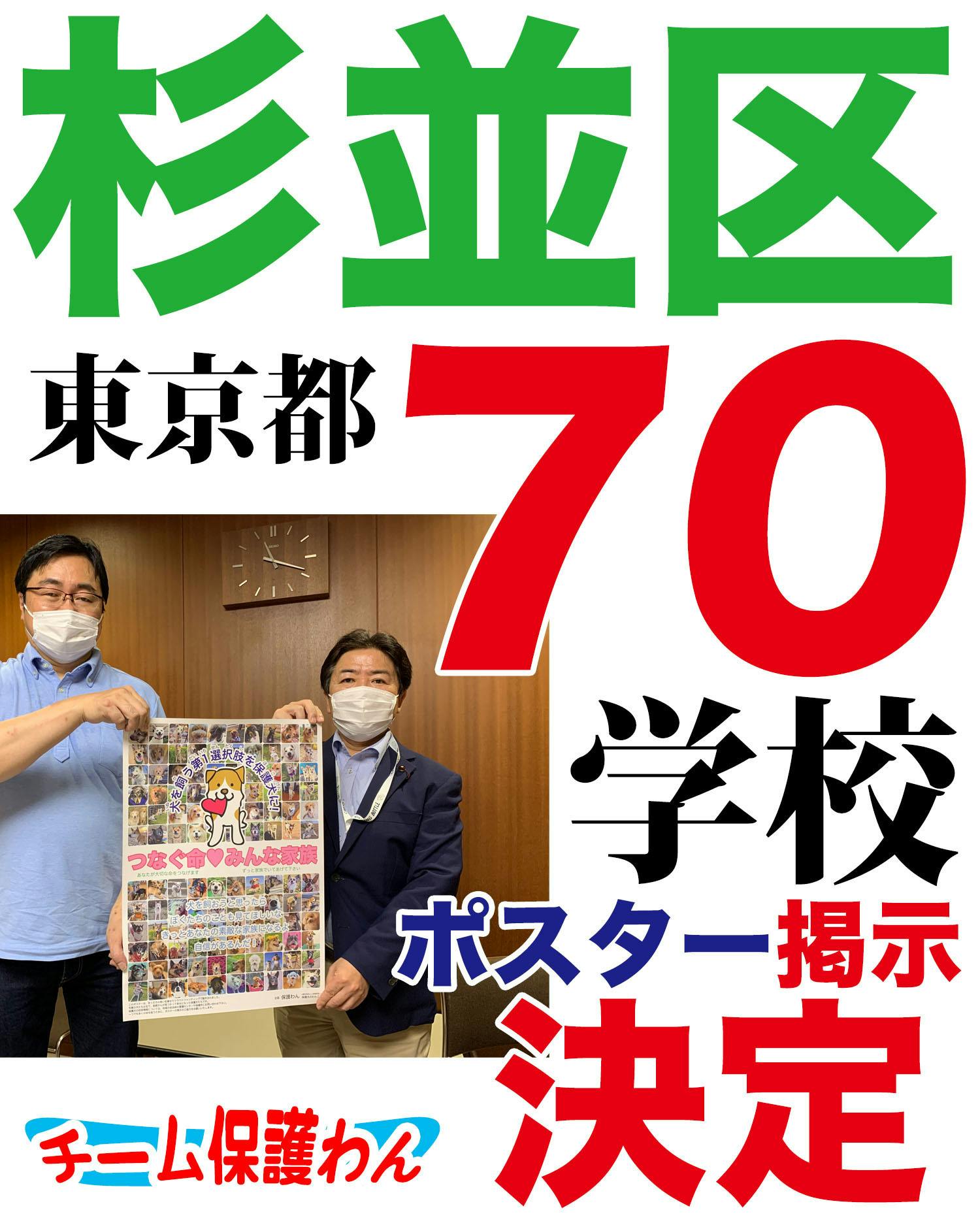 東京都杉並区内の全小中学校及び、特別支援学校、幼稚園の計70校(及び園)に保護犬啓発ポスター(A2サイズ他)を掲示して頂ける事になりました!!
