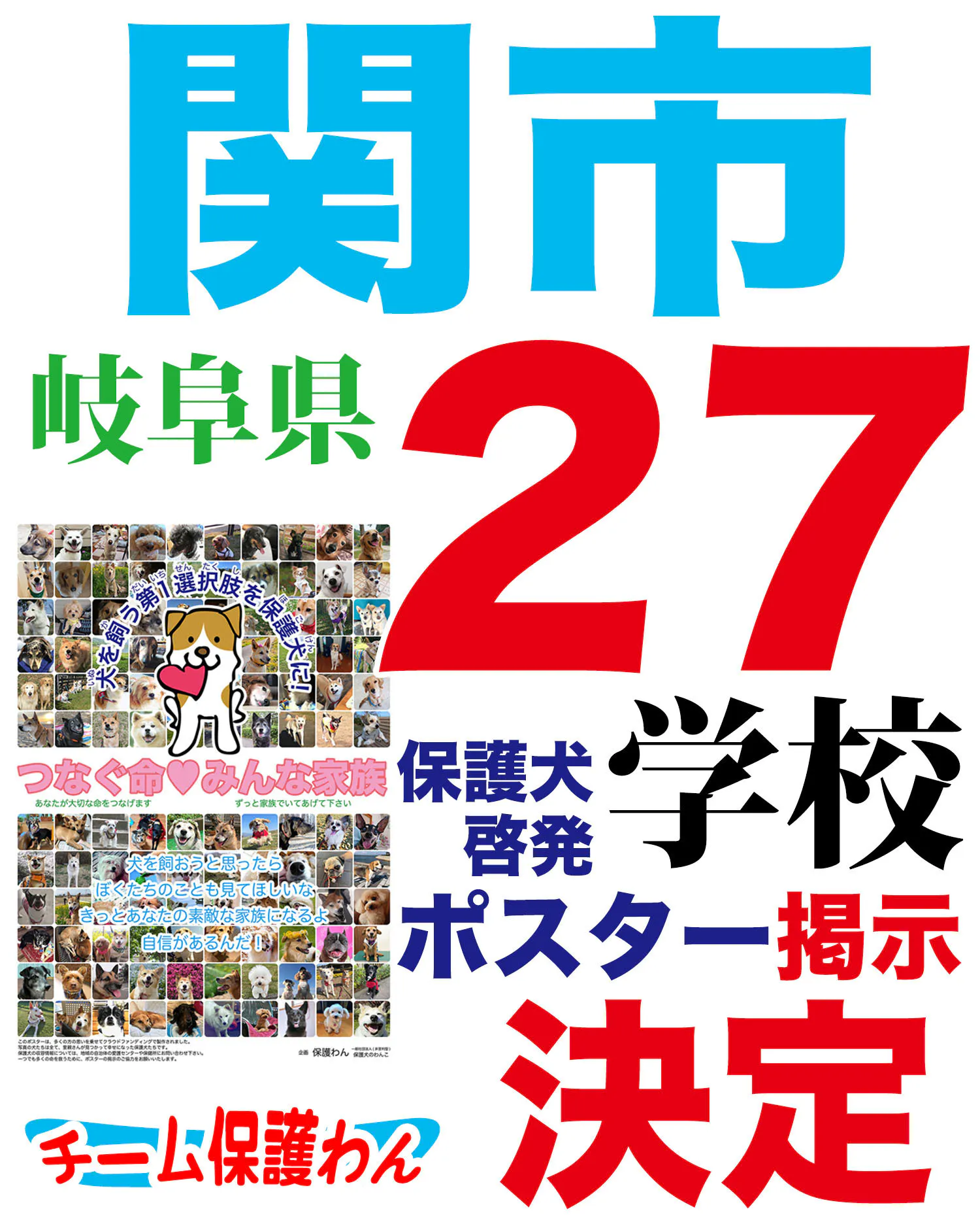 岐阜県関市の全小中学校計27校に保護犬啓発ポスター(A3サイズ)を掲示して頂ける事になりました!!