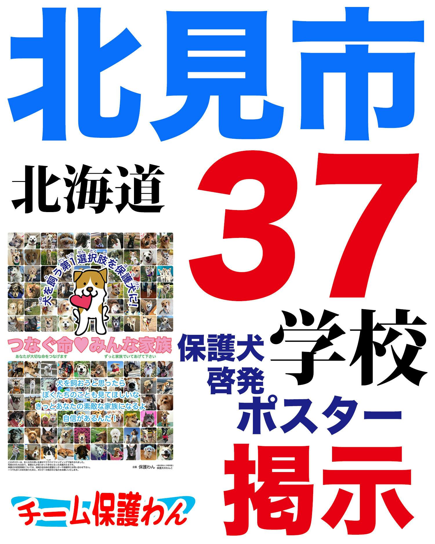 北海道北見市の全小中学校など、計37ヶ所(小学校 23校、中学校13校、義務教育学校 1校)に保護犬啓発ポスターを掲示して頂ける事になりました!!