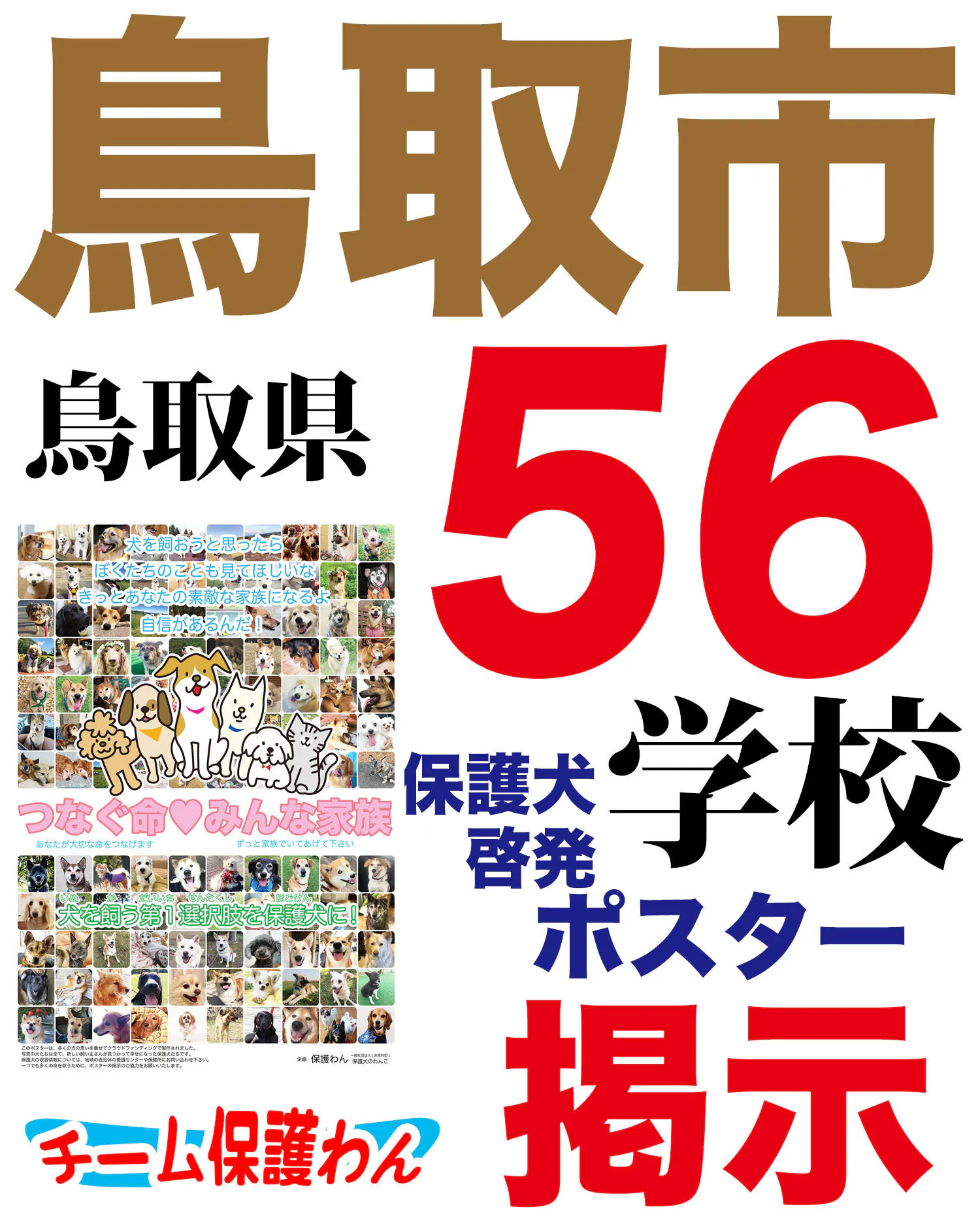 鳥取市内の全小中学校など計56ヶ所(小学校39校、中学校13校、義務教育学校4校)に保護犬啓発ポスターを掲示して頂ける事になりました!!