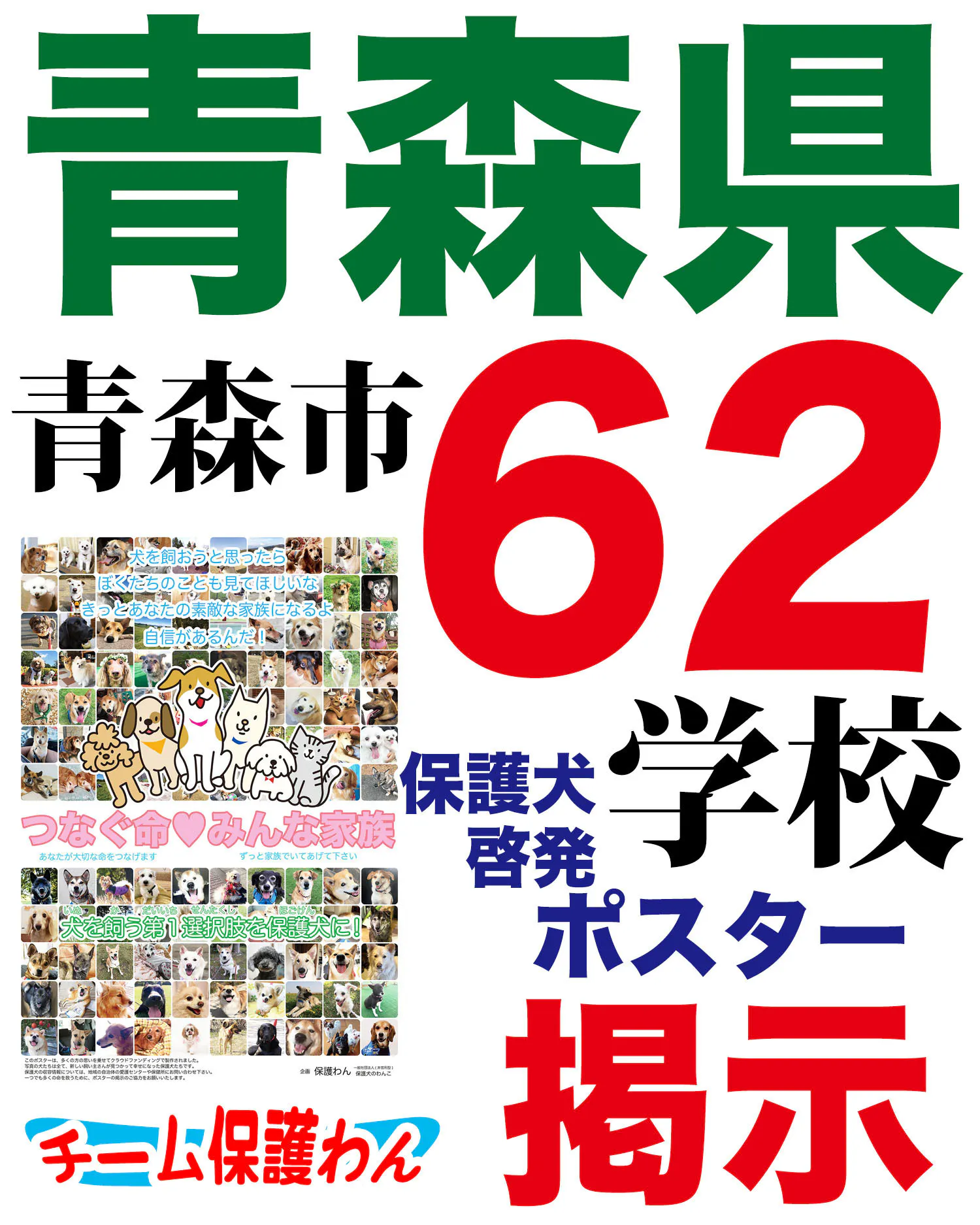 青森県青森市の全小中学校など計62ヶ所に保護犬啓発ポスターを掲示して頂ける事になりました!!