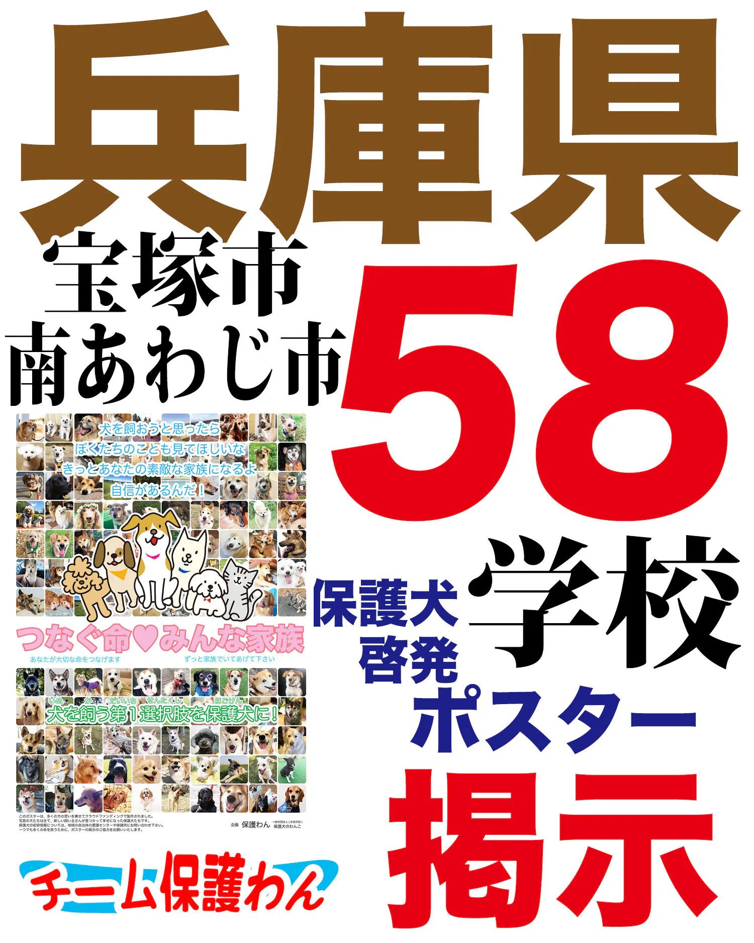 兵庫県の宝塚市と南あわじ市の全小中学校など計58ヶ所に保護犬啓発ポスターを掲示して頂ける事になりました!!