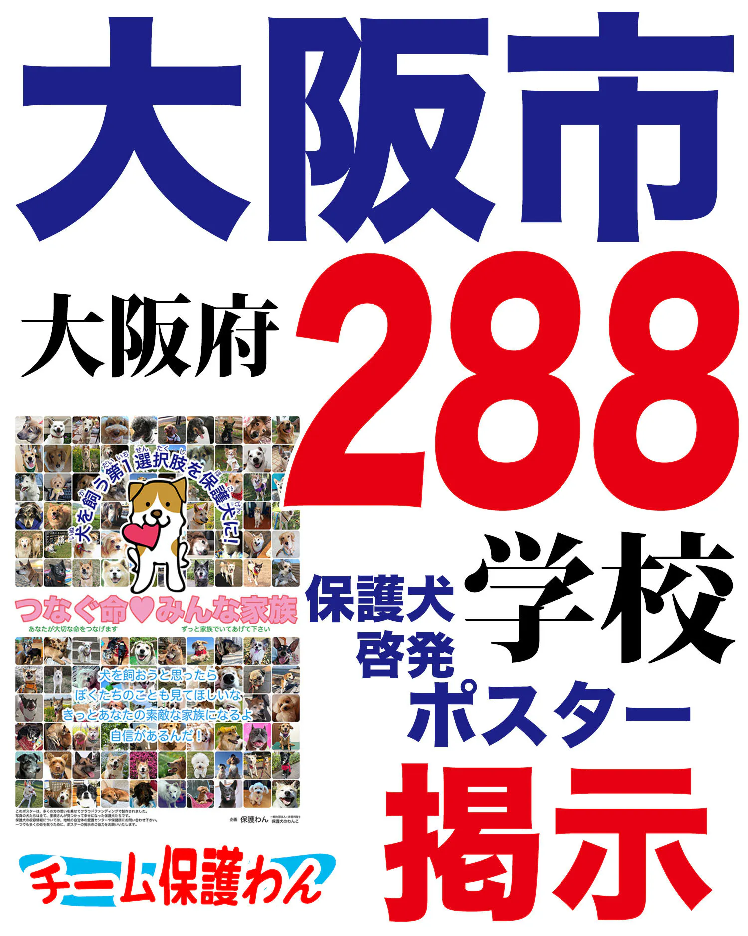 大阪府の大阪市の全小学校計288ヶ所に保護犬啓発ポスターを掲示して頂ける事になりました!!