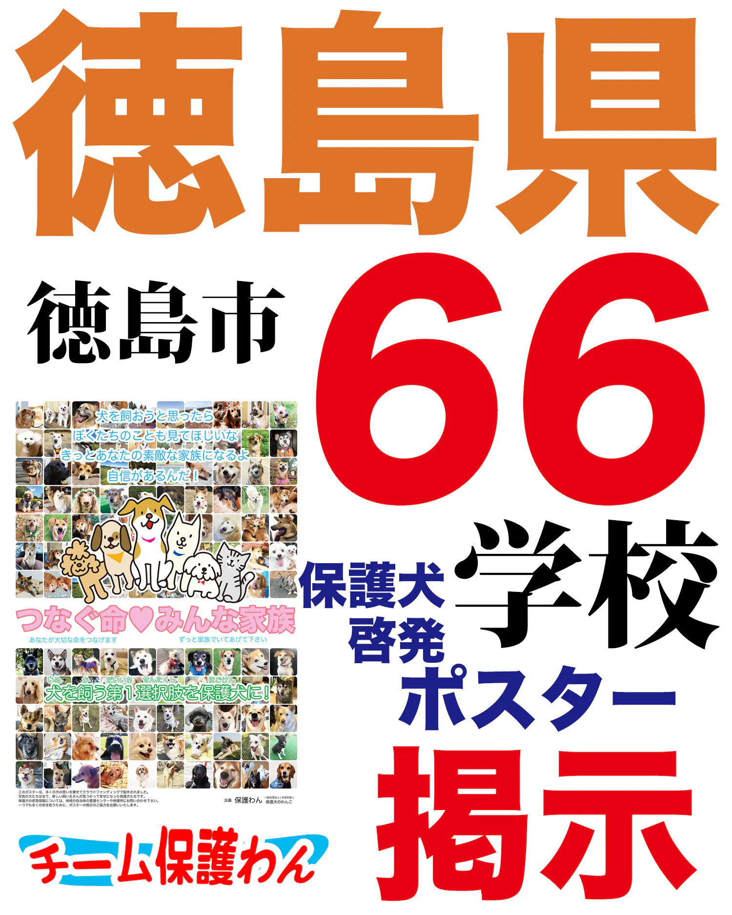 徳島県徳島市の全小中学校など計66ヶ所に保護犬啓発ポスターを掲示して頂ける事になりました!!