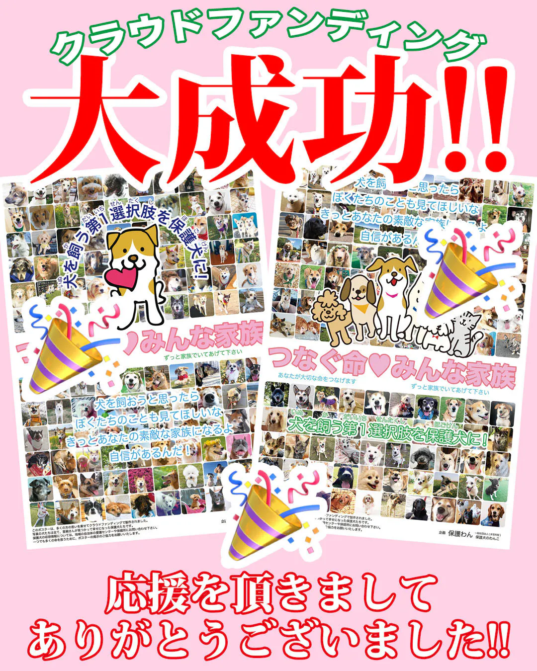 今回のクラウドファンディングの成功により、引き続き保護犬啓発ポスターの掲示活動を広めていく事ができます、