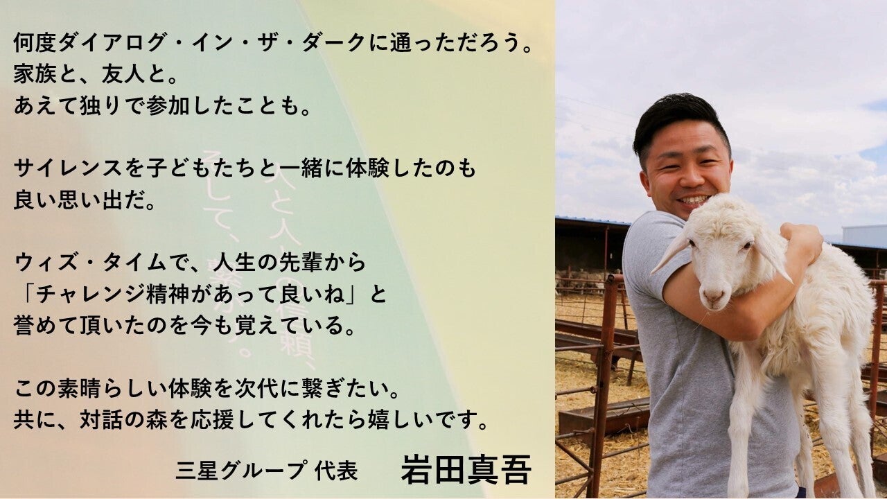 この素晴らしい体験を次代に繋ぎたい。共に、対話の森を応援してくれたら嬉しいです」