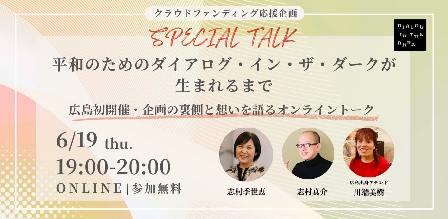 いずれのイベントも、「PEACE IN THE DARK」広島開催に向けたクラウドファンディングの応援企画として実施いたします(両イベントの参加費は、広島開催のためのクラウドファンディングに充てさせていただきます)。