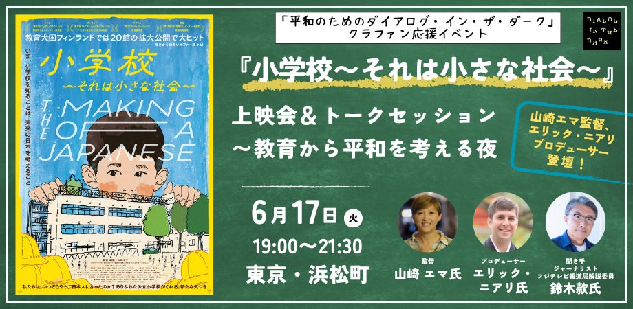 今、国内外で注目を集めているドキュメンタリー映画『小学校〜それは小さな社会〜』。この作品は、日本の公立小学校での一年間を見つめた記録です。教育をテーマに、監督・山崎エマ氏、プロデューサー・エリック・ニアリ氏、ジャーナリスト・鈴木款氏とともに、社会を形づくる“教育”から平和について考えます。
