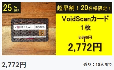 現在、リターン「超早割!25%OFF VoidScan 1枚」が人気となっております。残り10名様までですので、ご希望の方はお早めのお申し込みをお勧めいたします。