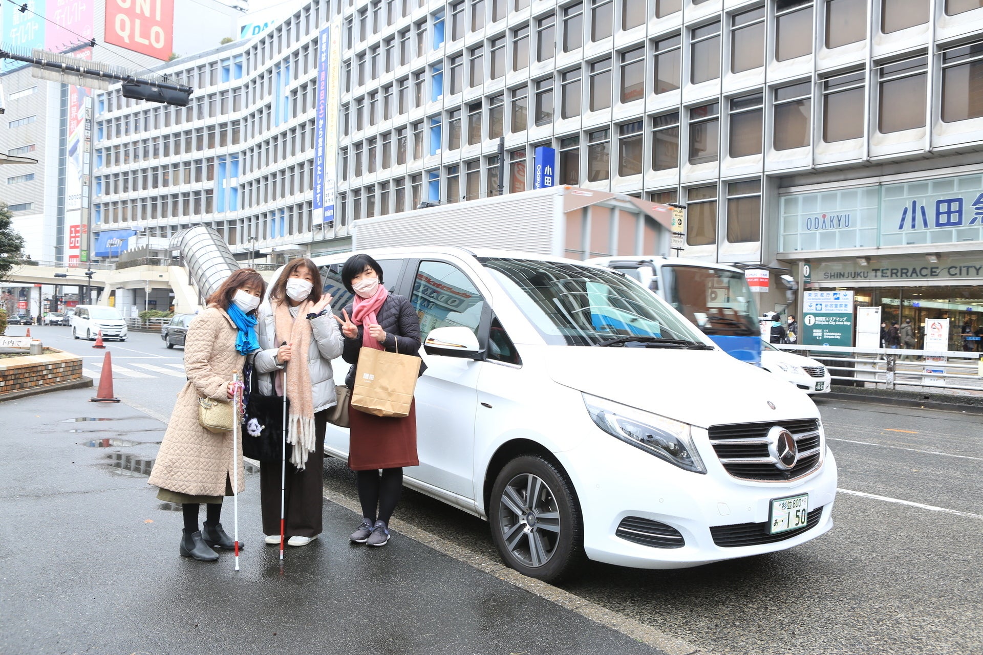 そこでー私達はまさかのベンツの介護タクシーをおしゃれに貸し切り、ツアーに使ってしまいます。