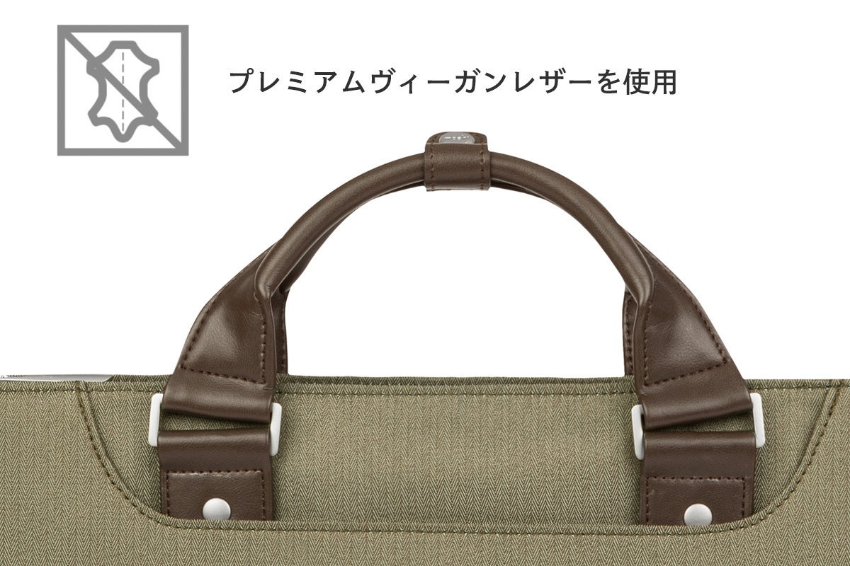 ハンドル部分はプレミアムヴィーガンレザーを使用