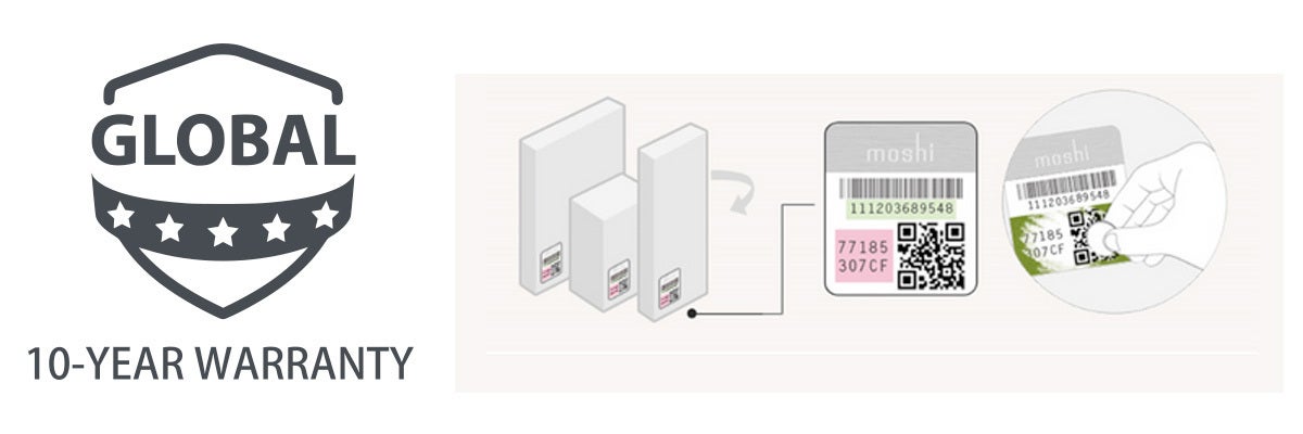 Moshiの業界をリードする10年間のグローバル保証は、moshiすべての製品カテゴリを対象としています。