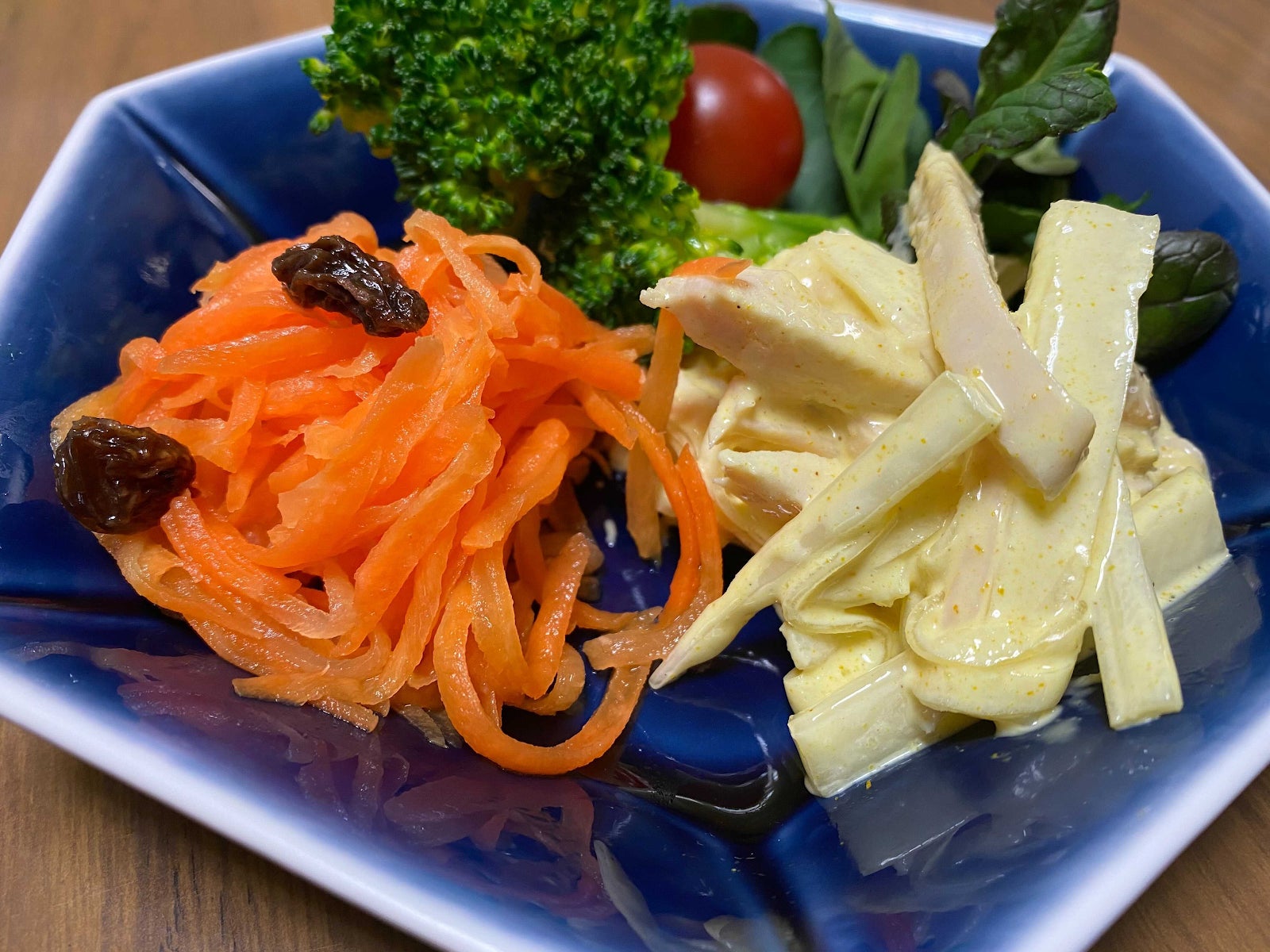 はちみつ&キャロットラペとハニーカレーチキンサラダ(マヨベース)