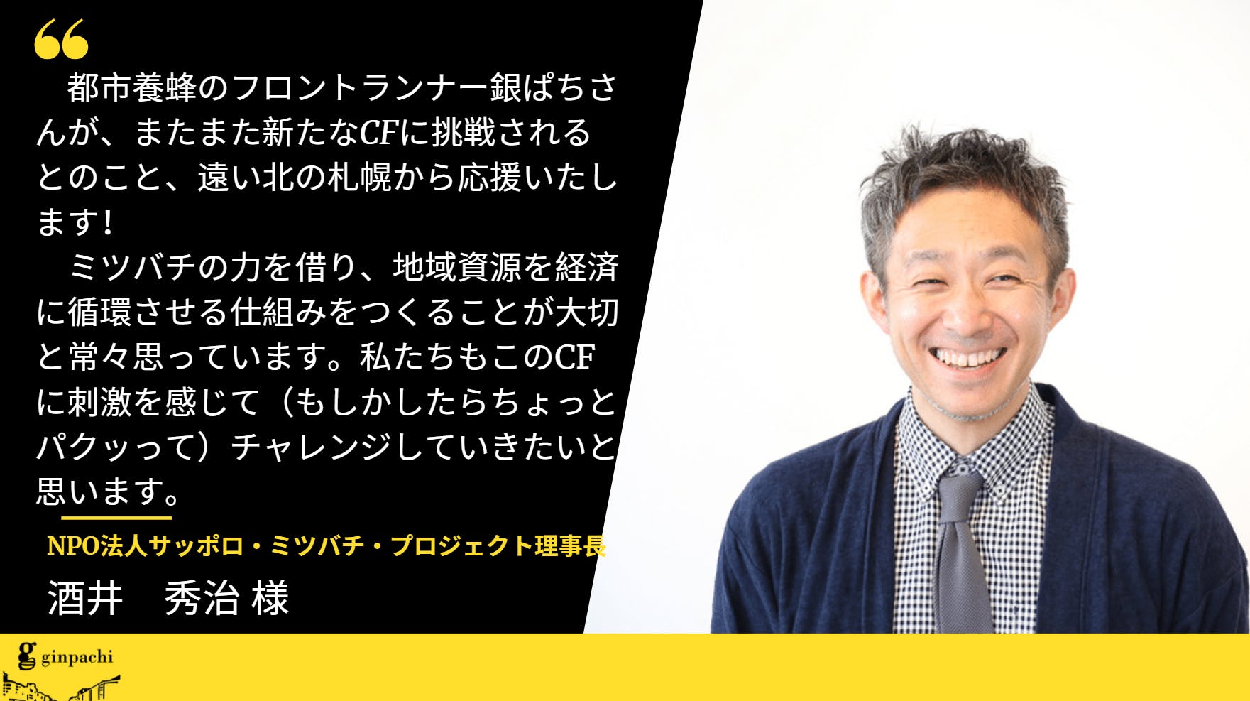 【応援メッセージ】NPO法人サッポロ・ミツバチ・プロジェクト 理事長 酒井秀治 様