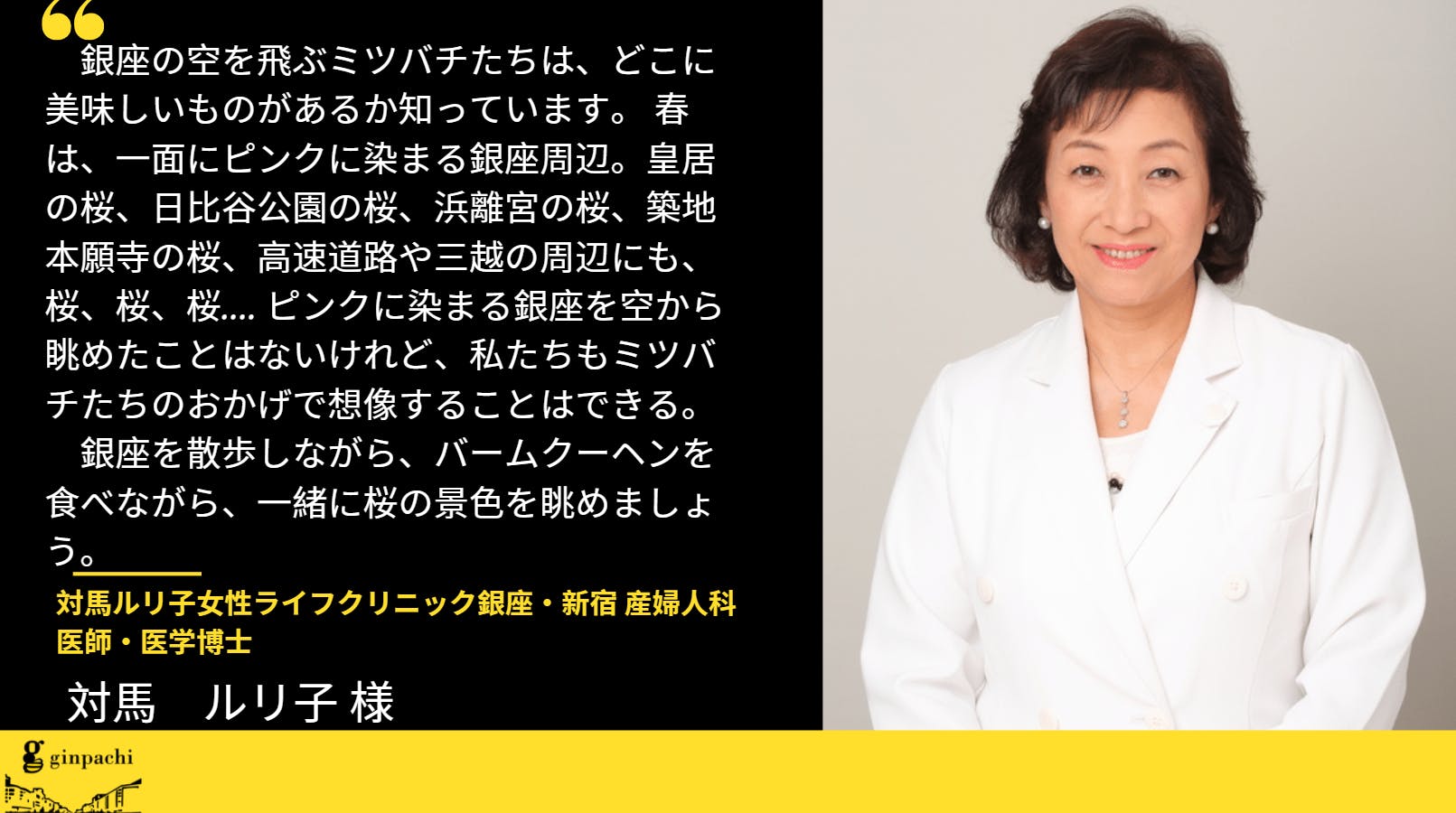 【応援メッセージ】対馬ルリ子女性ライフクリニック銀座・新宿 産婦人科医師・医学博士 対馬 ルリ子 様