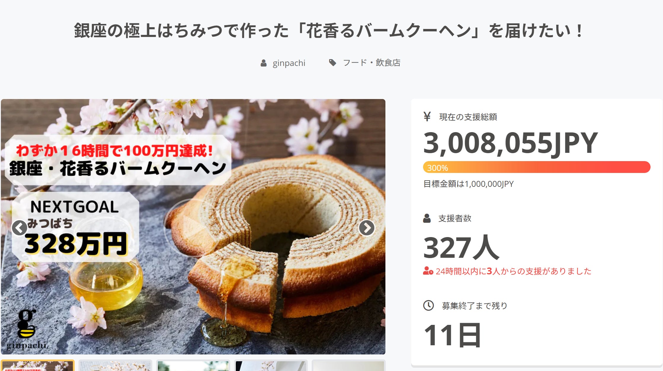 皆様この度は多大なるご支援をしていただき、誠にありがとうございます。本プロジェクトはネクストゴール328万円を突破いたしました。深く御礼申し上げます。つきましては、ファイナルゴール500万円を目指します!プロジェクト終了まで「残り6日」。引き続き応援よろしくお願いいたします!銀座ミツバチプロジェクト