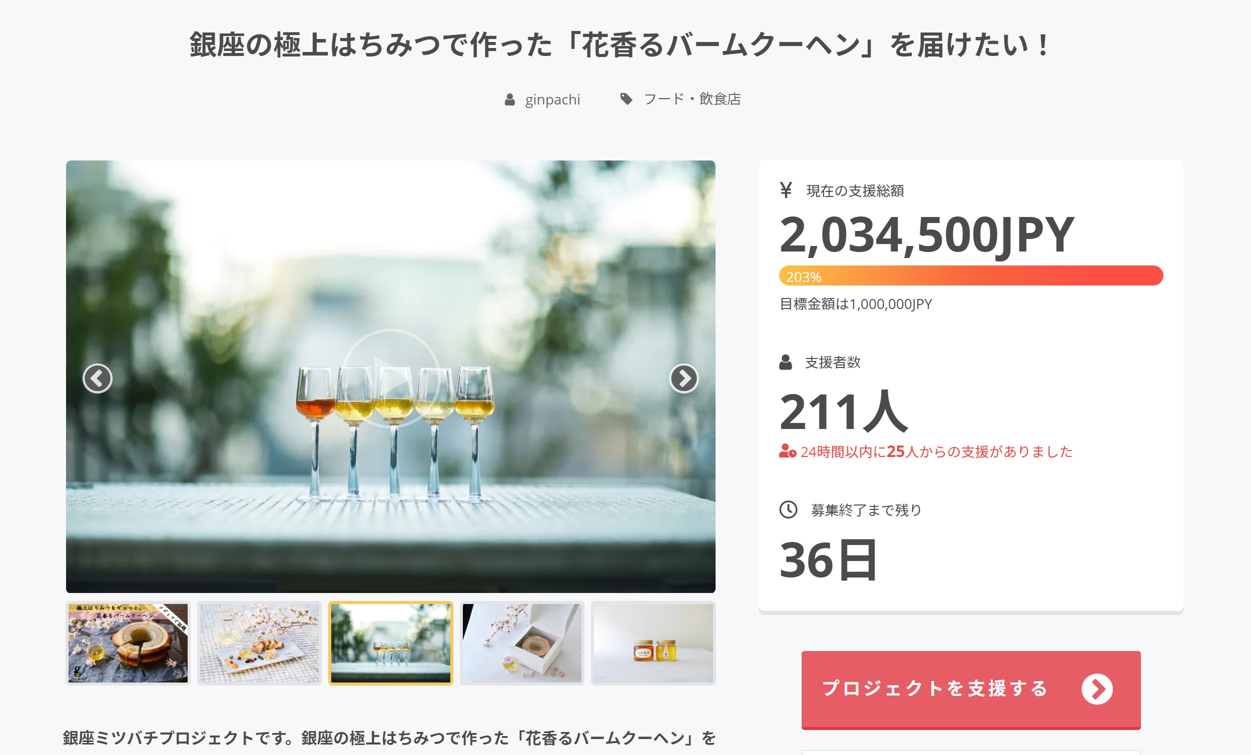 皆様この度は多大なるご支援をしていただき、誠にありがとうございます。本プロジェクトは開始から約3日で目標金額の200%”200万円”を突破いたしました。誠にありがとうございます。プロジェクトは2021年4月15日まで行います。引き続き、応援よろしくお願いいたします。銀座ミツバチプロジェクト